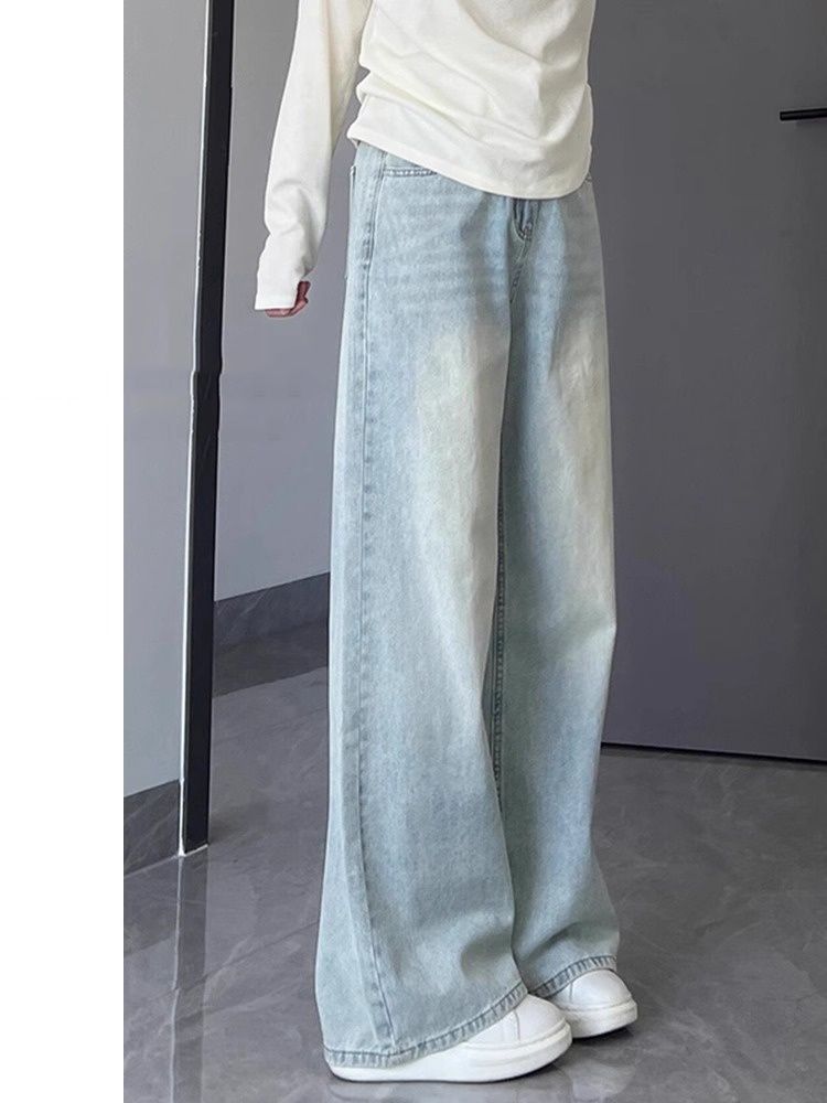 여성용 라이트 블루 스트레이트 청바지 봄 여름 신상 대형 드레이프 바지 하이 웨이스트 좁은 버전 루즈 슬리밍 와이드 레그 팬츠