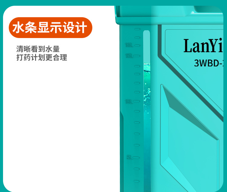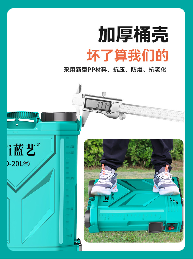 • 20리터 3스위치(리튬 배터리 고압 펌프)는 80배럴의 물을 보장하며 다이아몬드 그린 색상으로 새겨져 있습니다.