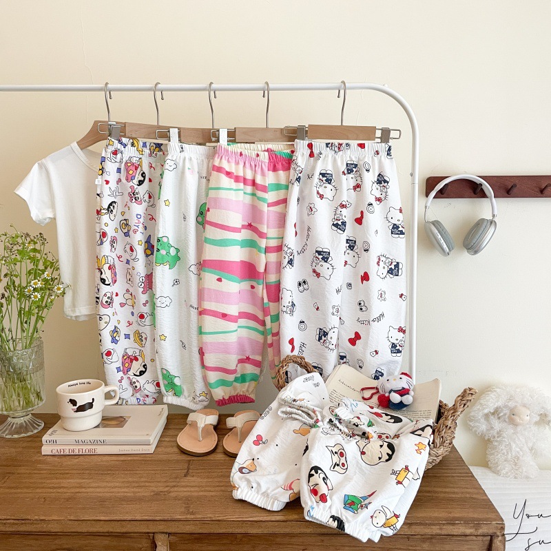 어린이 여름 바지 만화 아기 에어컨 바지 잠옷 모기 방지 바지 귀여운 홈 바지 소년과 소녀를위한 얇은 바지