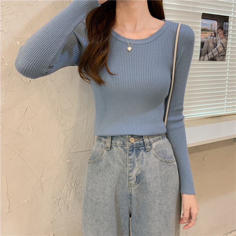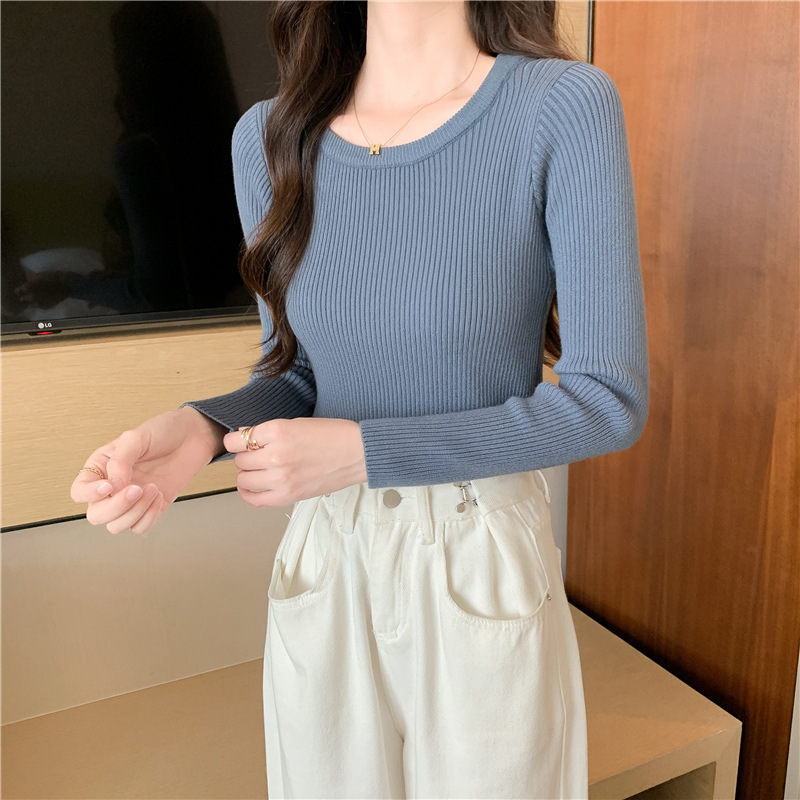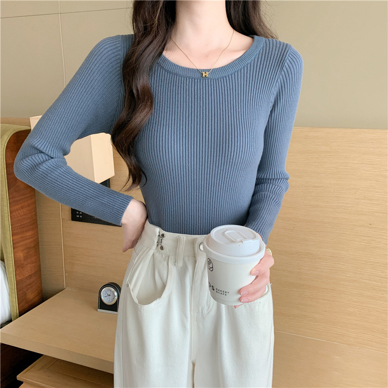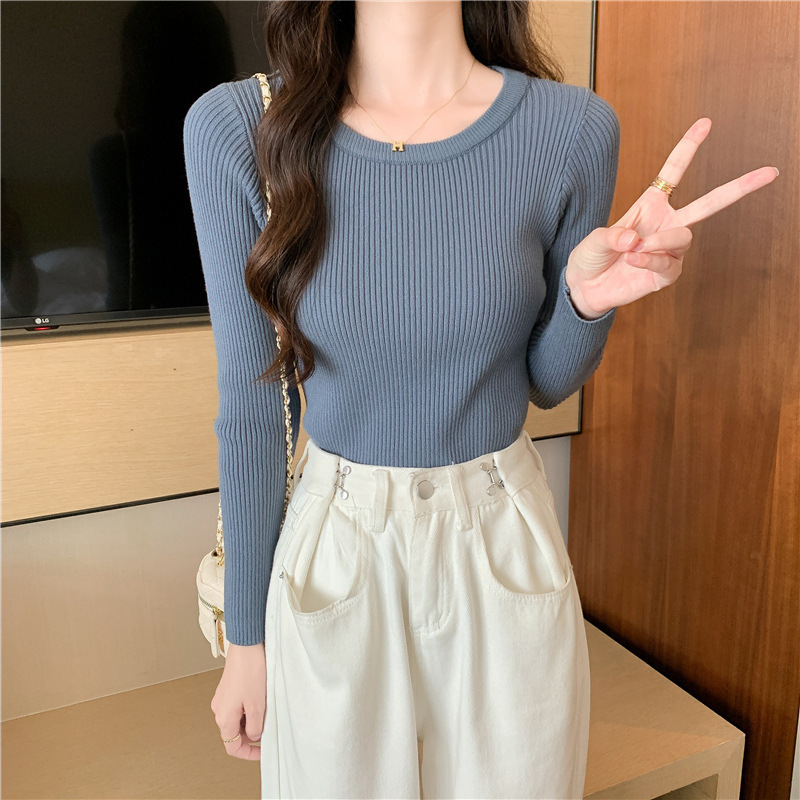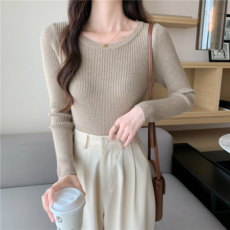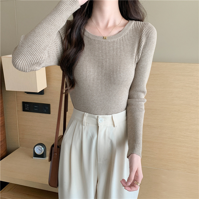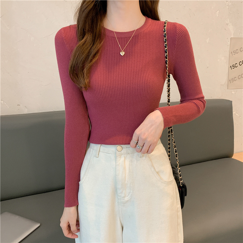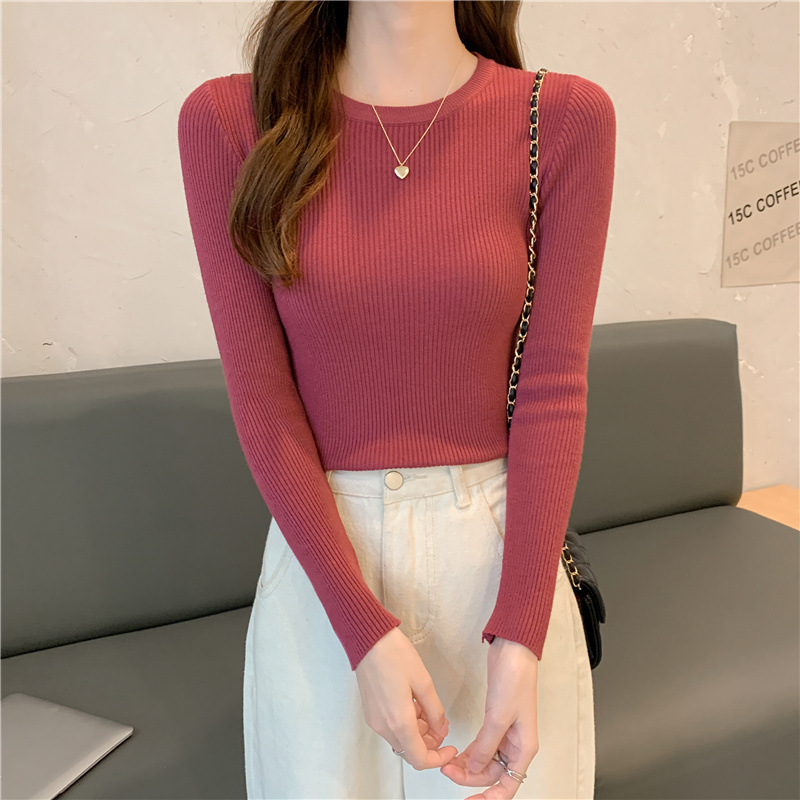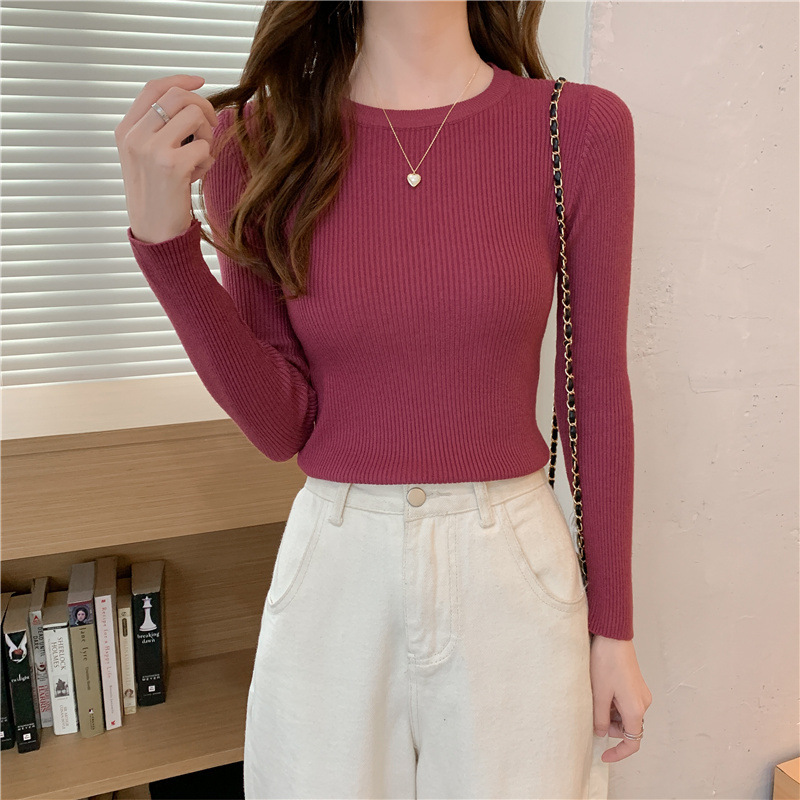 봄 여름 여성용 니트 베이스 레이어, 다재다능하고 스타일리시한 핑크 스웨터, 슬림 라운드 넥 긴팔 탑, 화이트스토어 가기