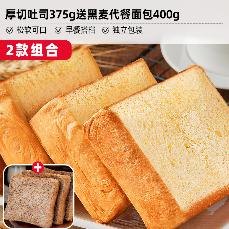 • 밀크 두껍게 썬 토스트 375g과 호밀 대체빵 400g이 17.42&-0g에 제공됩니다.
