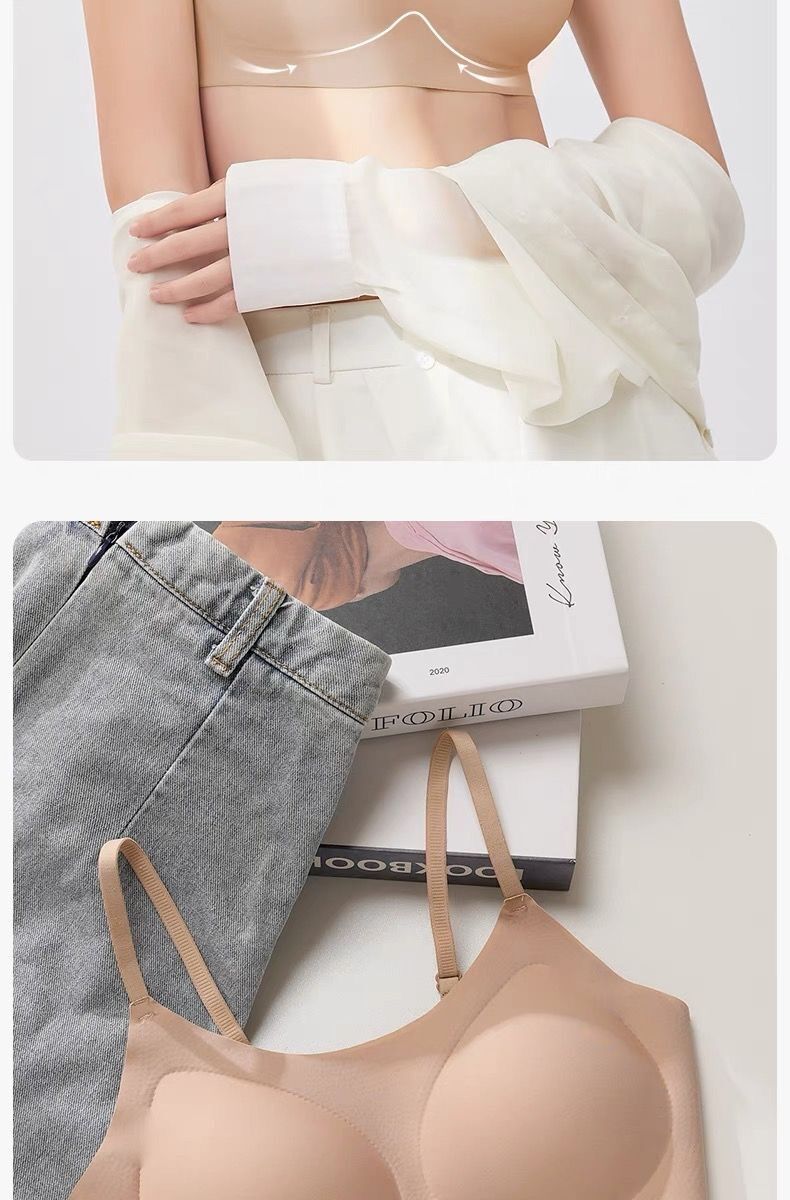 리퀴드 파운데이션, 눈에 띄지 않는 트레이스리스 여성용 속옷, 올인원 고정컵, 작은 가슴 푸쉬업, 처짐 방지, 얇은 스트랩 브라