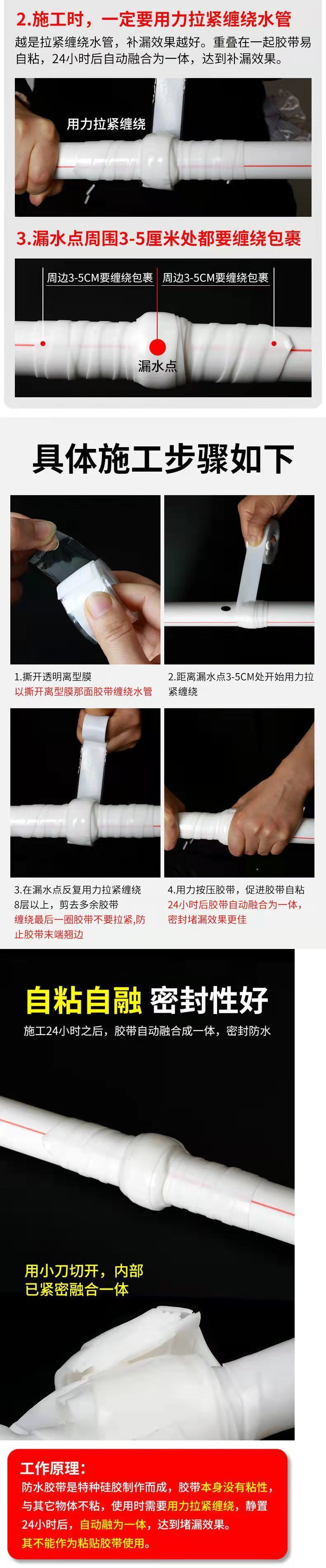 수도관 누수방지 강력방수테이프, 무정지수압수리접착제, 욕실밀봉누수방지테이프