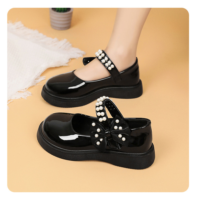여자 가죽 신발 어린이 패션 공주 신발 2025 봄과 가을 새로운 메리 진주 부드러운 바닥 캐주얼 여자 성능 신발스토어 가기