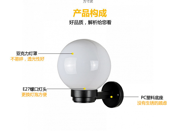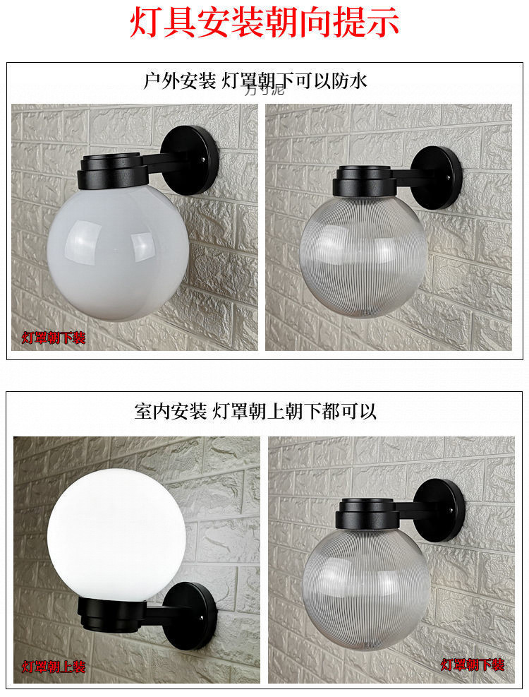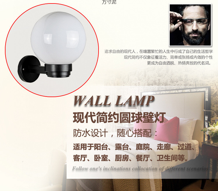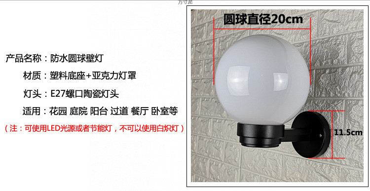 야외 태양 보호 LED 벽 램프 발코니 테라스 램프 통로 계단 복도 라운드 볼 램프 머리맡 램프 욕실 램프 도매