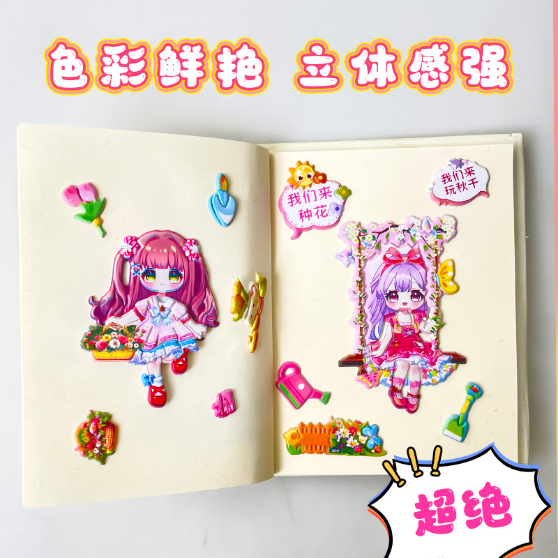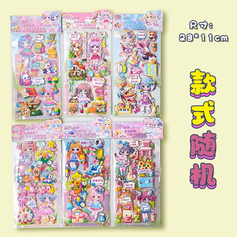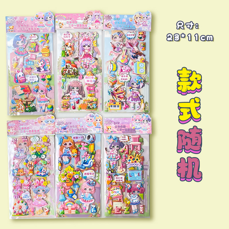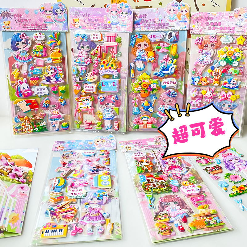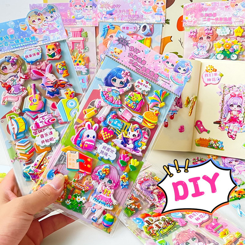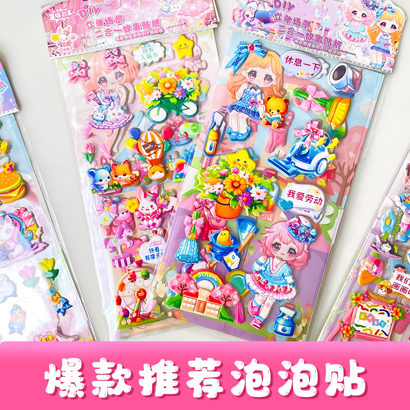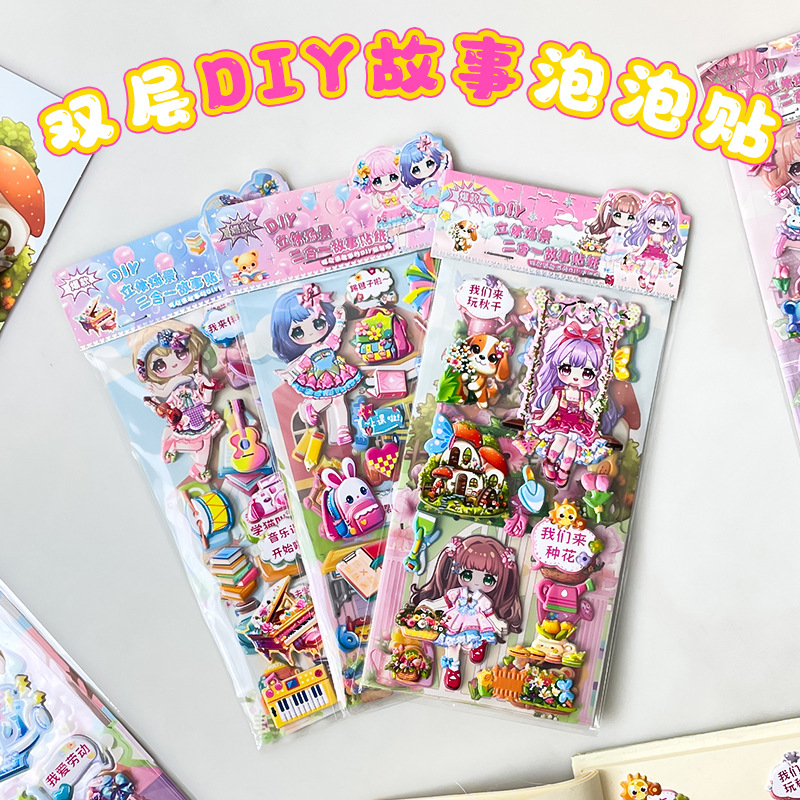 새로운 어린이 크리 에이 티브 스티커 diy 입체 장면 투인원 스토리 스티커 귀여운 더블 레이어 스티커 도매스토어 가기