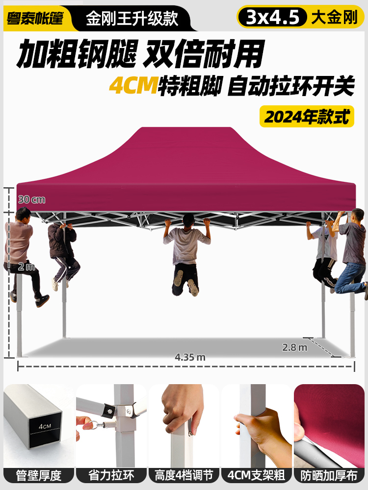 • 3x4.5 자동 두꺼운 프레임 두꺼운 창고 와인 레드 ₪