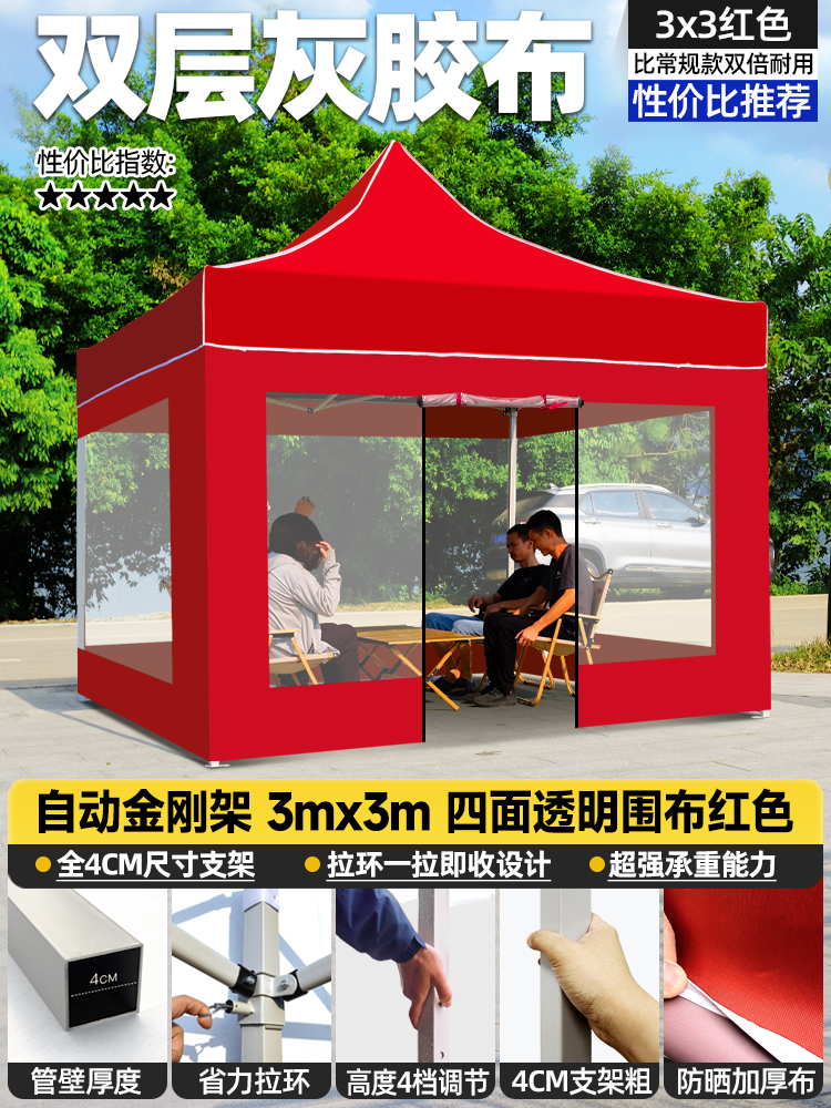 • 3x3 자동 거친 프레임 두꺼운 창고 빨간색 [시중보다 15% 더 무거움] ₪