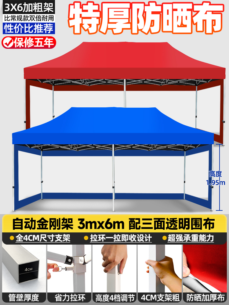 야외 텐트 광고 접이식 접이식 차양 대형 우산 4각 우산 차고 주차장 방수 천막 4각 스톨스토어 가기