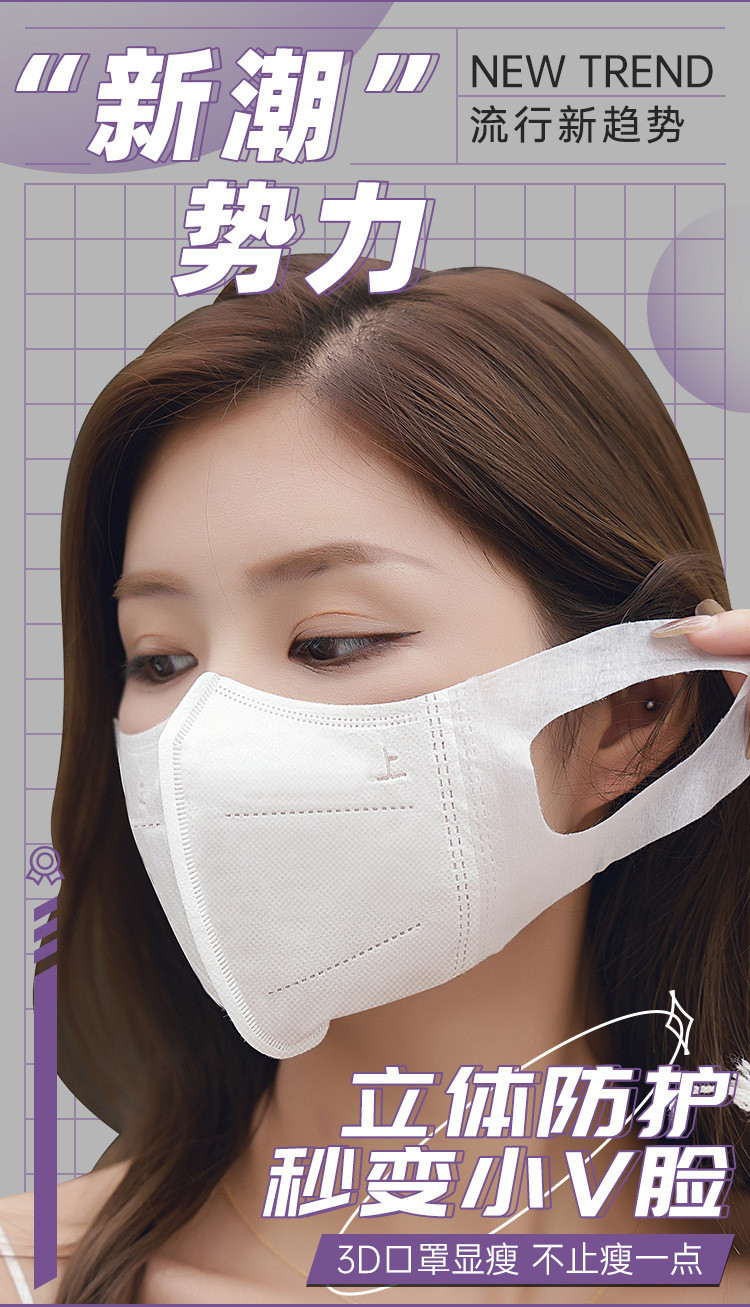얼굴을 날씬하게 만들어주는 마스크, 탄력있는 귀걸이형 마스크, 패셔너블한 입체 3D 일회용 부직포 버전, 성인용 통기성