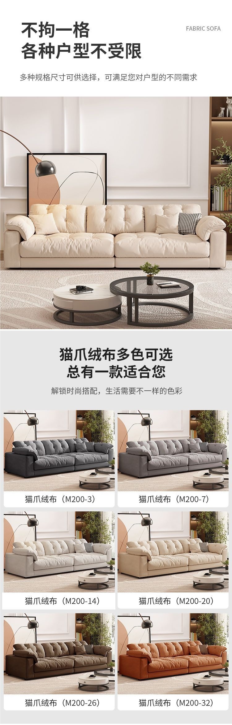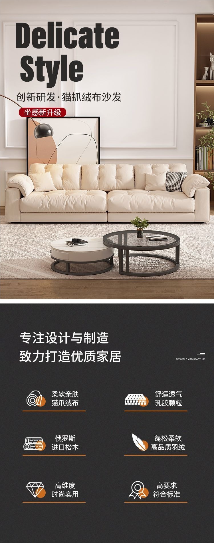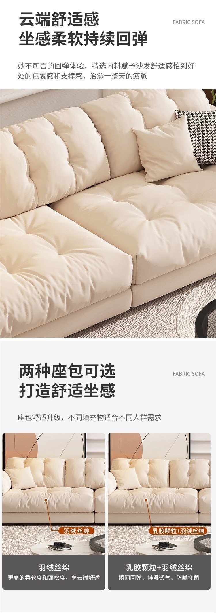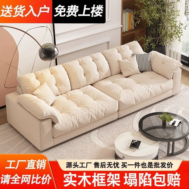 크림 스타일 패브릭 소파 거실 작은 아파트 간단한 현대적인 가벼운 럭셔리 기술 패브릭 홈 스트레이트 클라우드 소파스토어 가기