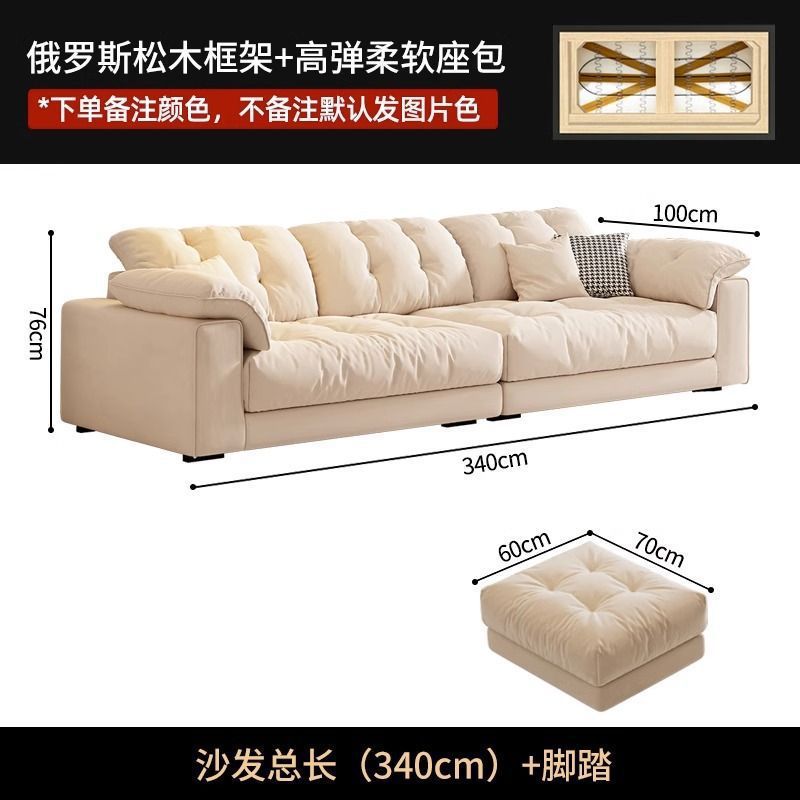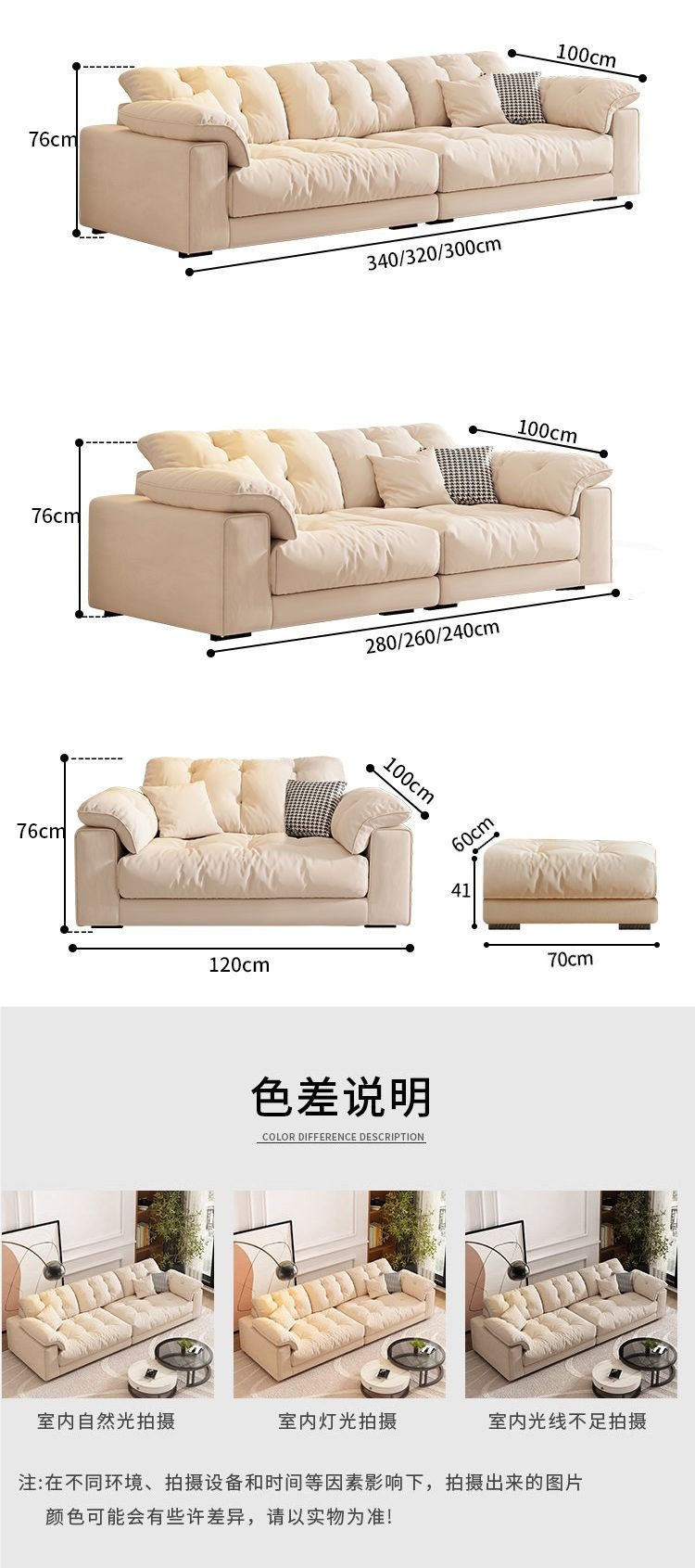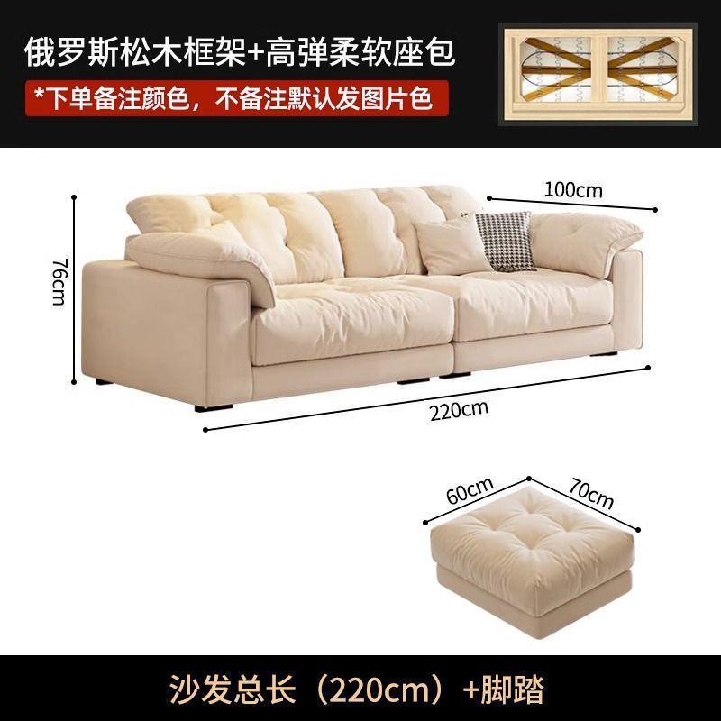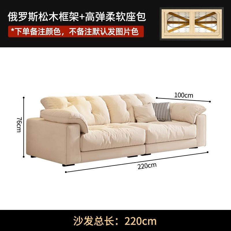 크림 스타일 패브릭 소파 거실 작은 아파트 간단한 현대적인 가벼운 럭셔리 기술 패브릭 홈 스트레이트 클라우드 소파