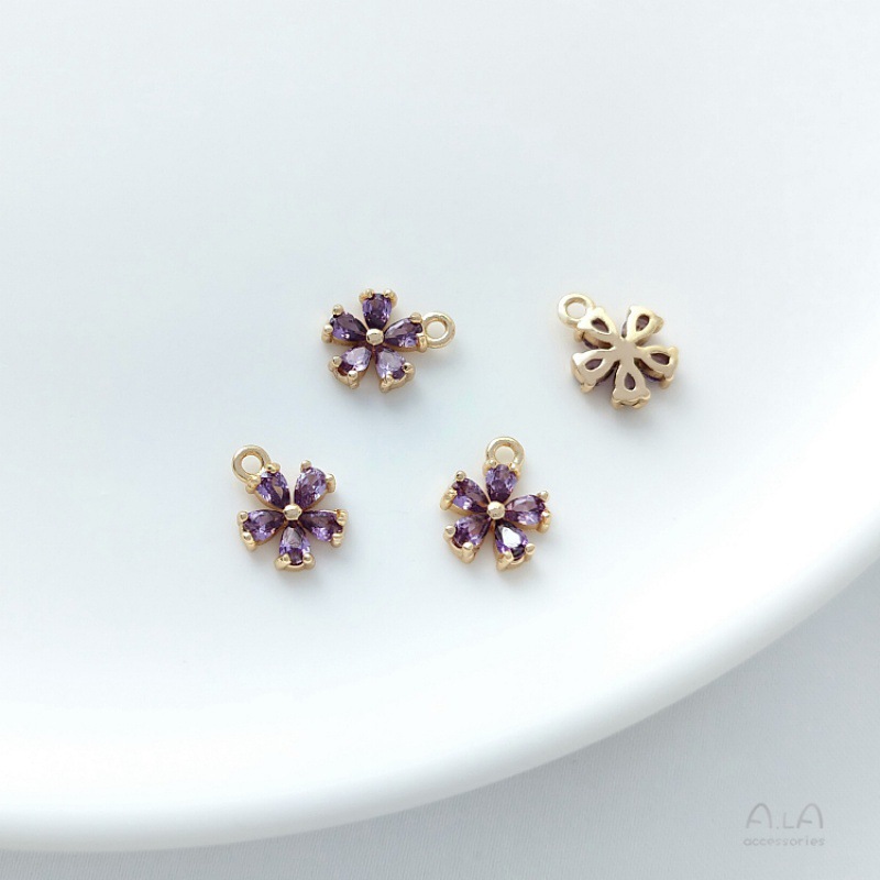 보석 컬러 팔찌 펜던트 색상 유지 상감 14Kdiy 지르콘 작은 복숭아 꽃 귀걸이 펜던트 다섯 꽃잎 금으로 채워진 작은 꽃스토어 가기