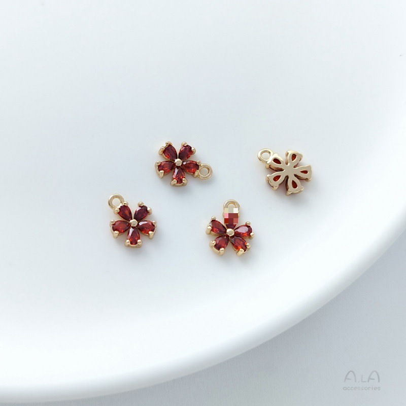 보석 컬러 팔찌 펜던트 색상 유지 상감 14Kdiy 지르콘 작은 복숭아 꽃 귀걸이 펜던트 다섯 꽃잎 금으로 채워진 작은 꽃