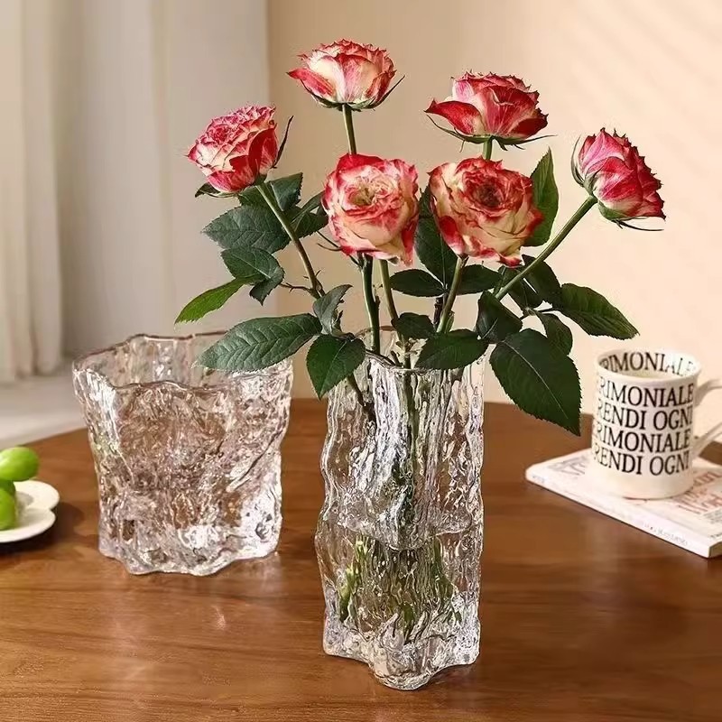 유리 꽃병 장식품, 거실 꽃꽂이, 고급 수경 투명 수경 크리스탈 바닥 식탁 창의적인 장식