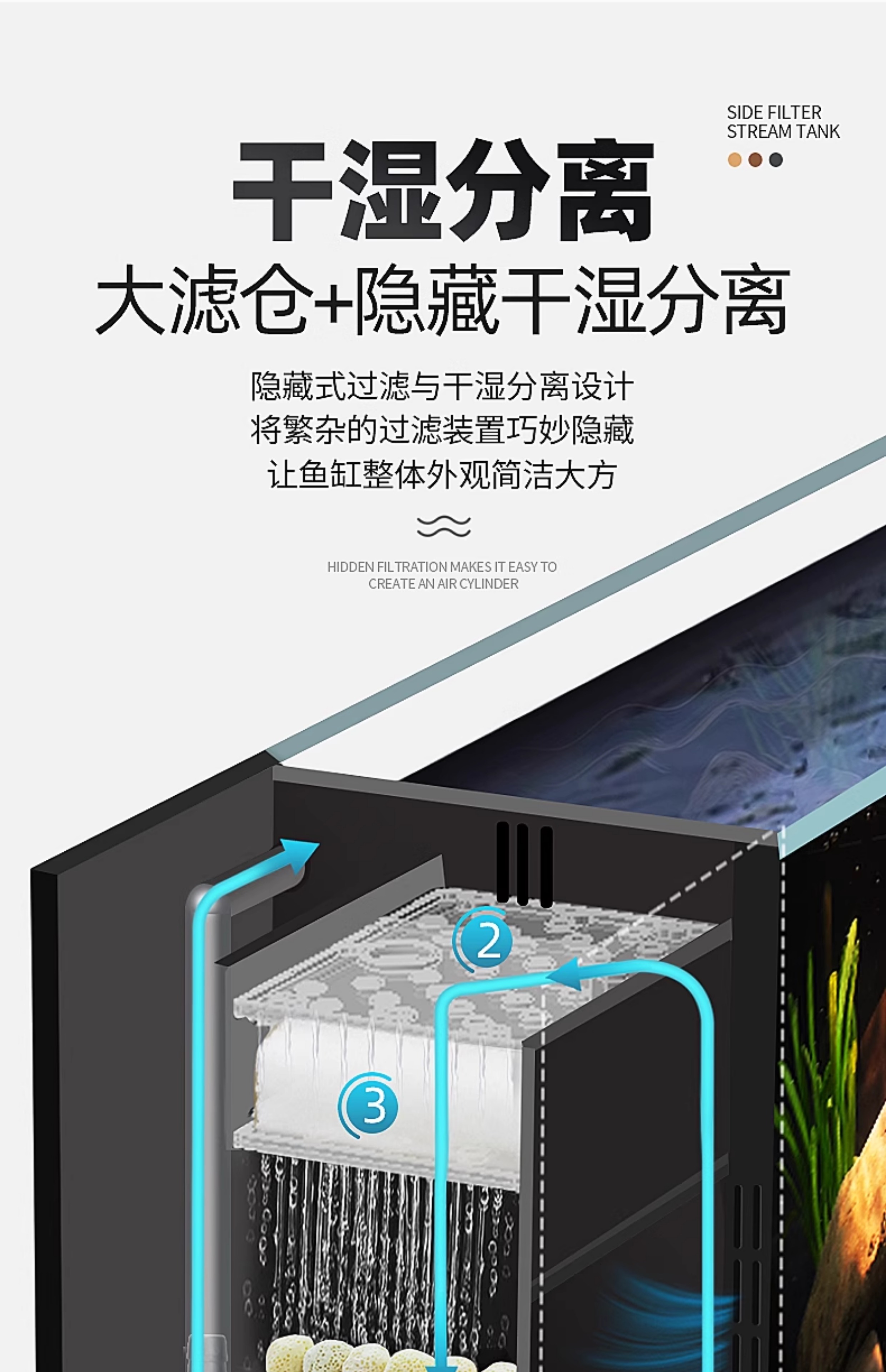 수조 거실 소형 측면 필터 산소 스트림 탱크 슈퍼 화이트 생태 데스크탑 유리 탱크 2025 새로운 조경 금붕어스토어 가기