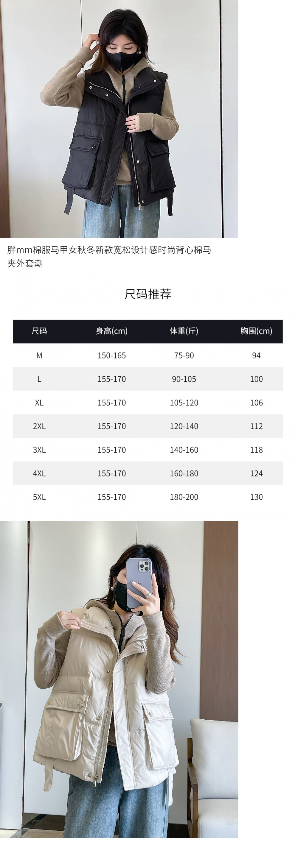 여성을위한 다운 코튼 조끼 가을, 겨울 새로운 느슨한 디자인 패션 조끼 조끼 재킷