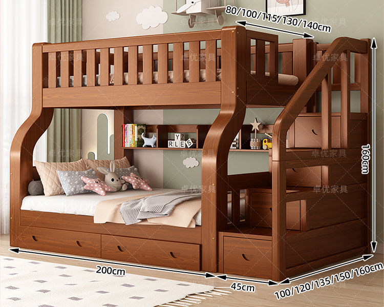 이층침대, 이층침대, 다기능 2층 조합 원목 이층침대, 어린이 이층침대, 더블침대