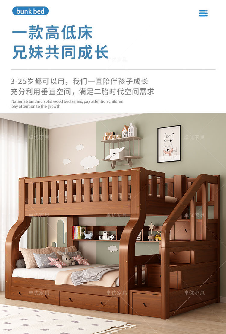 이층침대, 이층침대, 다기능 2층 조합 원목 이층침대, 어린이 이층침대, 더블침대스토어 가기