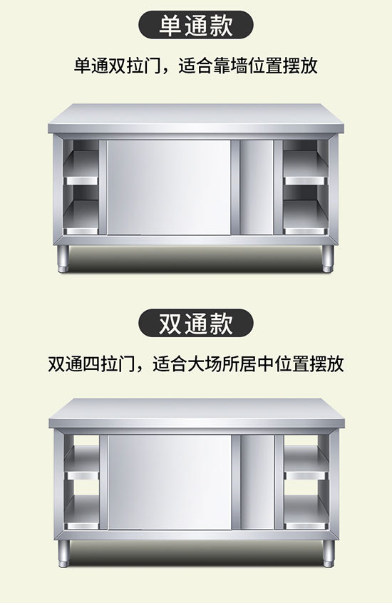 스테인레스 스틸 작업대 주방 조작 카운터 상단 보관 캐비닛 슬라이딩 도어 도마가있는 야채 절단 테이블 상업용 베이킹