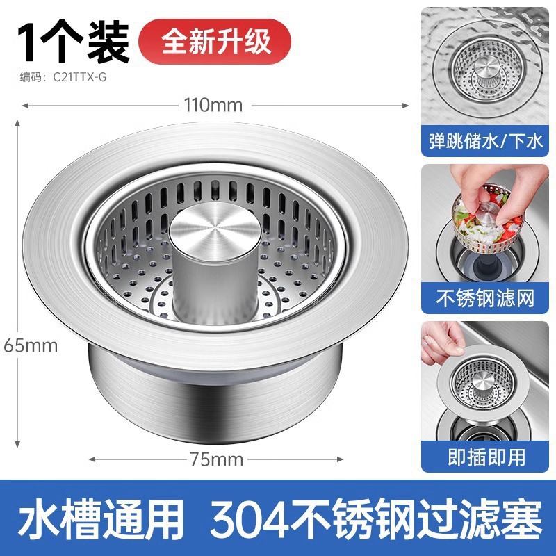 304 스테인리스 스틸 싱크 필터 주방 싱크대 탄성 필터 싱크대 배수 마개 범용 원제조사스토어 가기