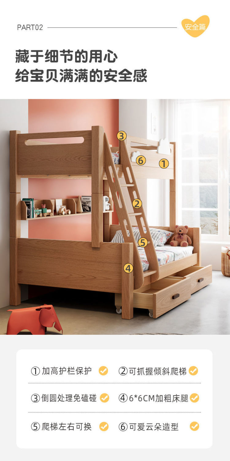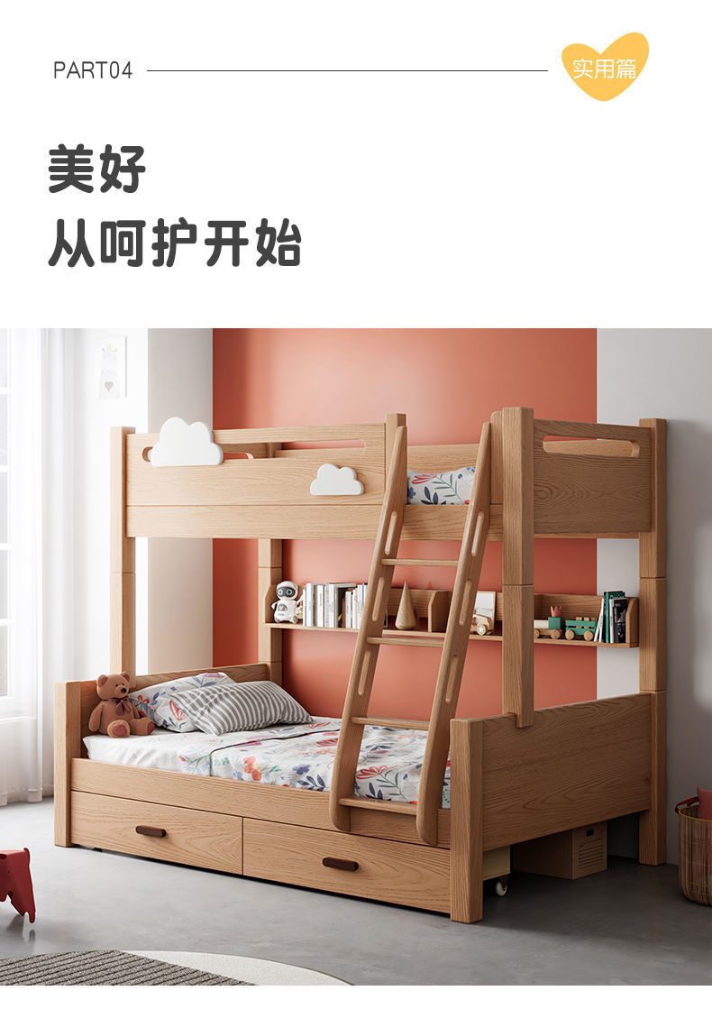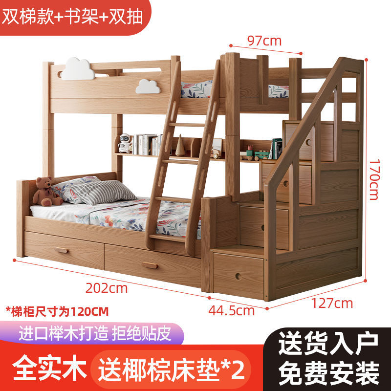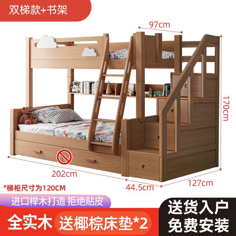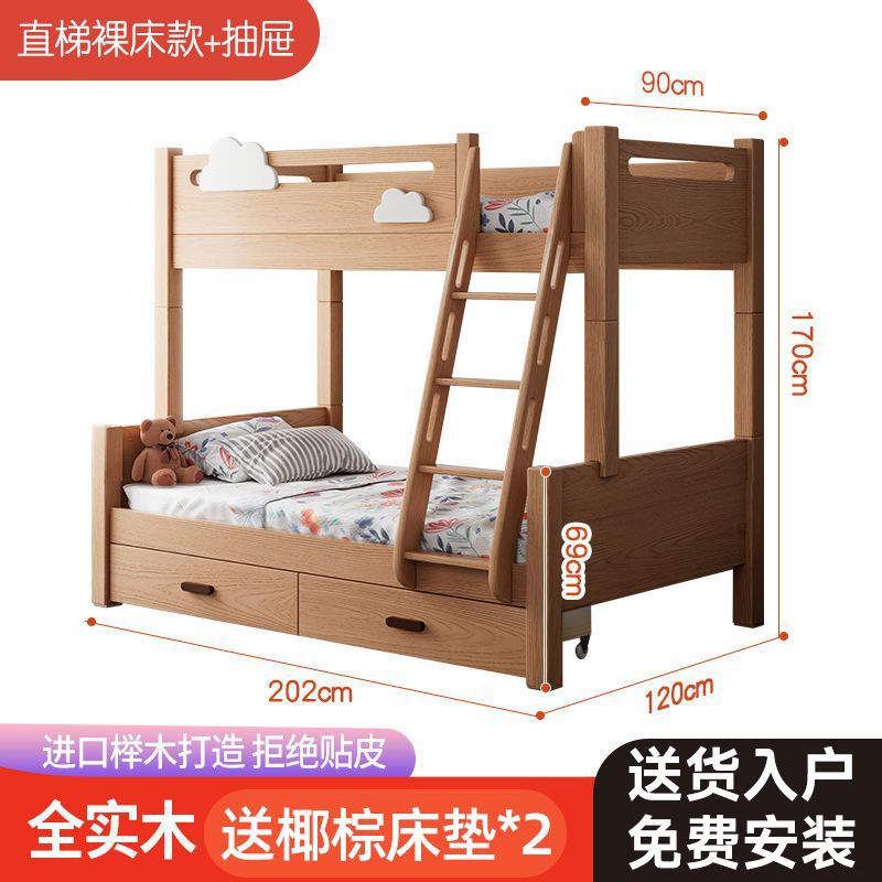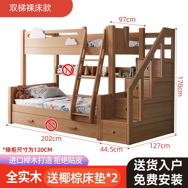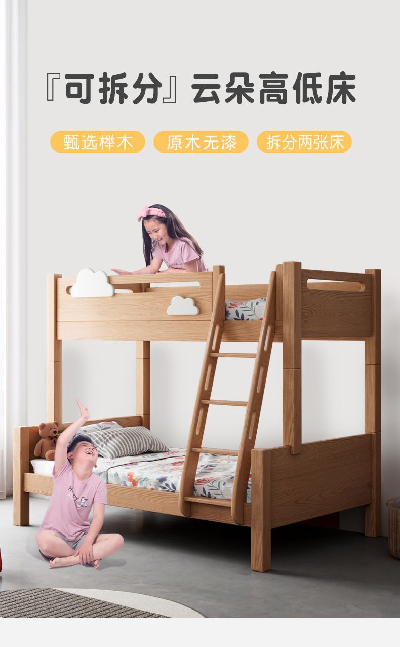 건강한 주거용 어린이 침대 너도밤나무 원목 이층 침대 높낮이 침대 소형 아파트 이층 분리형 침대 클리어런스