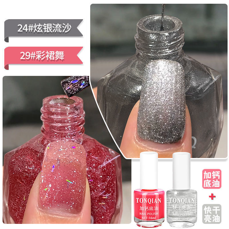 반짝이는 다채로운 스팽글, 베이킹 없음, 오래 지속되는 속건성 매니큐어, 인터넷 연예인 매니큐어 세트, 대형 병, 다용도, 벗겨짐 방지