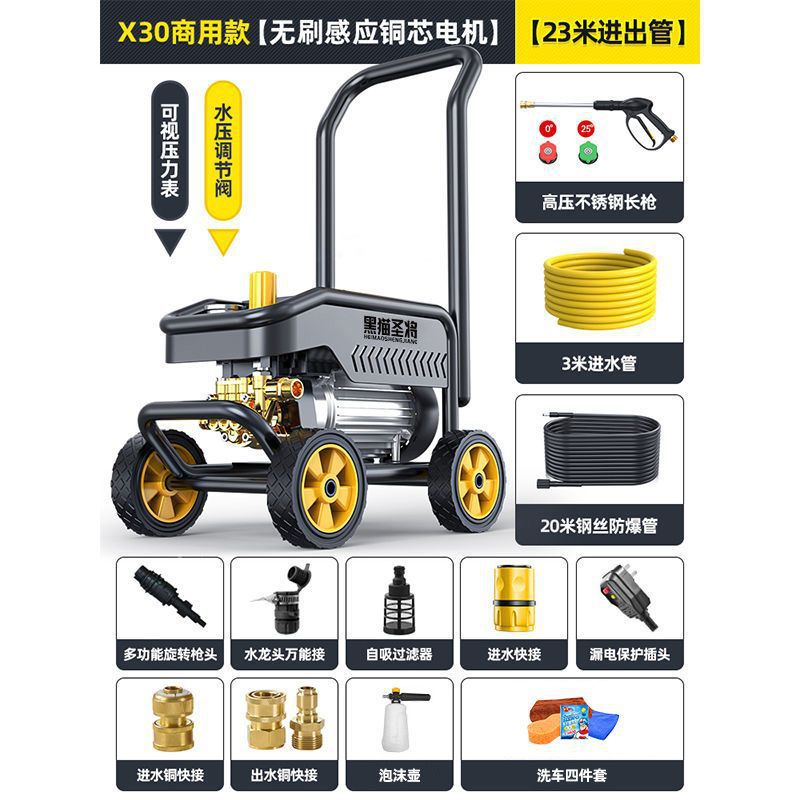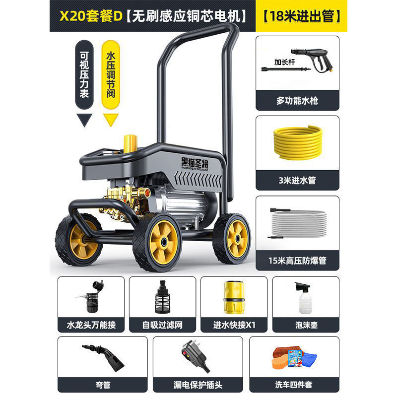 검은 고양이 세인트 자동차 세탁기 고압 워터 펌프 가정용 220V 고출력 자동차 브러시 물총 자동차 세척 기본 항목스토어 가기