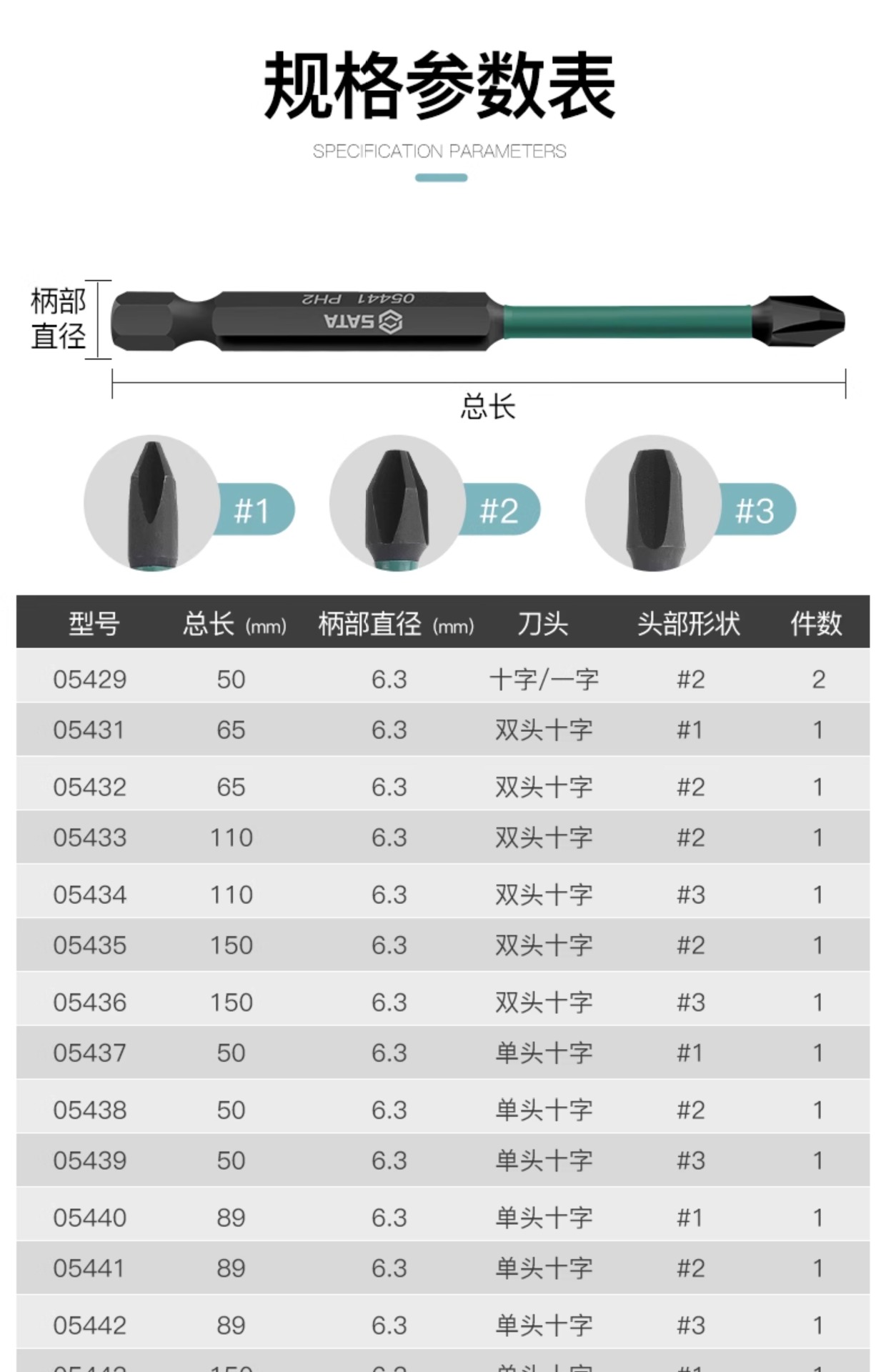 • 10Pcs 더블 헤드 [크로스#2】전체 길이 50/110/150mm-05471