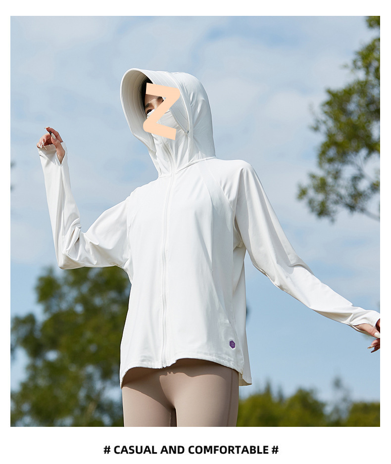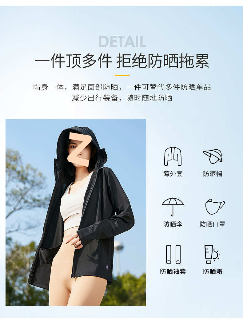 UPF实测200+!这款凉感防晒衣,采用原纱凉感防晒云朵纱,触肤即凉有效阻隔紫防晒值UPF50+.外线≥99.5%,多次水洗防晒力不减;搭载吸湿速干科技出汗后清爽不粘身,高弹纤维,无拘大动作,让运动时光无惧晒伤~,原纱型防晒衣,在纺纱阶段就将防晒材料混入纤维中,制成的纱线自带防晒效果。这种方式不仅环保,而且防晒效果持久,耐水洗,不易掉防晒值哦!