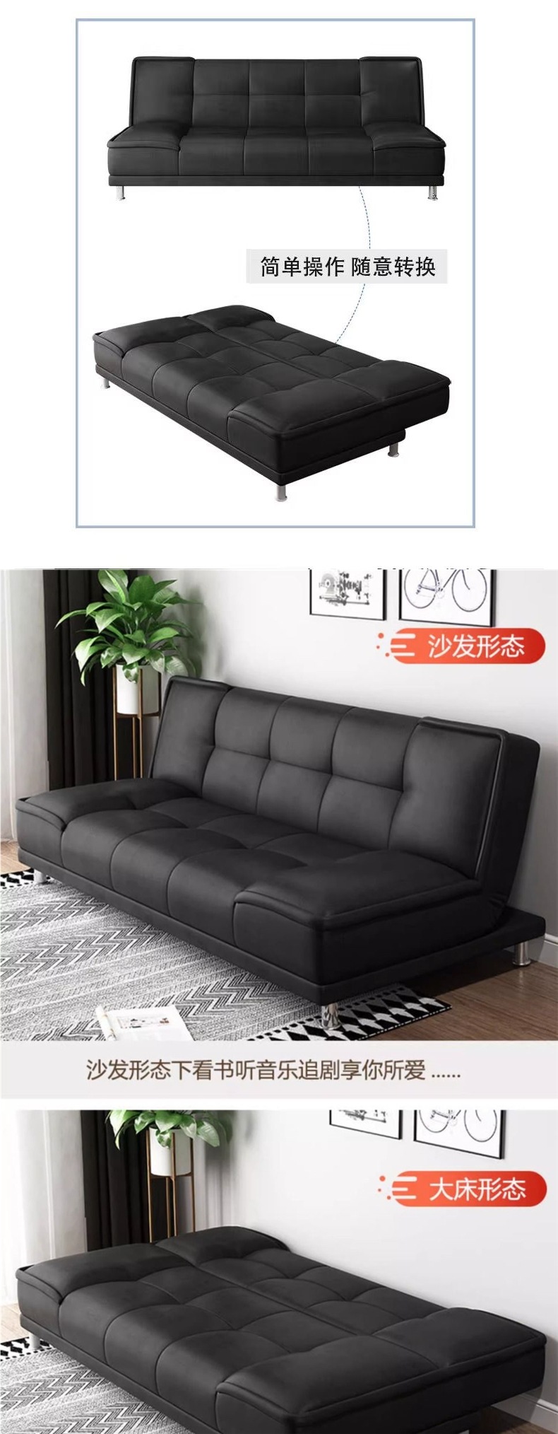 소파 거실 작은 아파트 2024 새로운 아파트 침실 임대 집 단단한 나무 접이식 이중 목적 작은 가죽 소파 침대스토어 가기