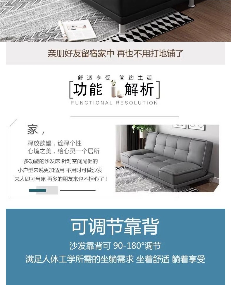 소파 거실 작은 아파트 2024 새로운 아파트 침실 임대 집 단단한 나무 접이식 이중 목적 작은 가죽 소파 침대