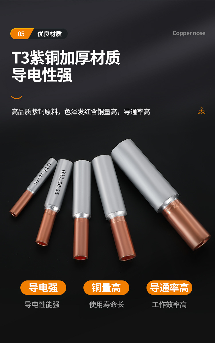 GTL 구리-알루미늄 커넥터 전환 연결 파이프 터미널 블록 10/16-400 사각형 트랜스퍼 파이프 노즈 직접 파이프