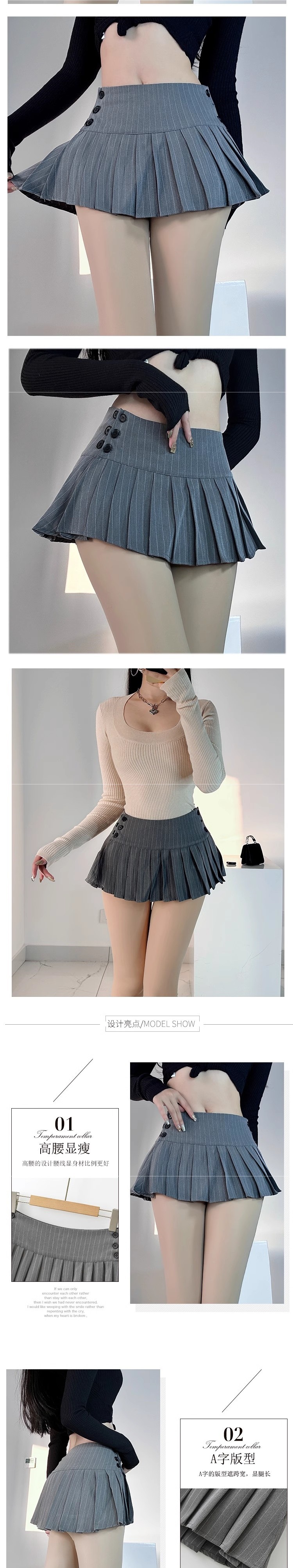 여름 미국 복고풍 줄무늬 회색 양복 낮은 허리 여성 다목적 섹시한 뜨거운 소녀 낮은 허리 주름 짧은 치마스토어 가기