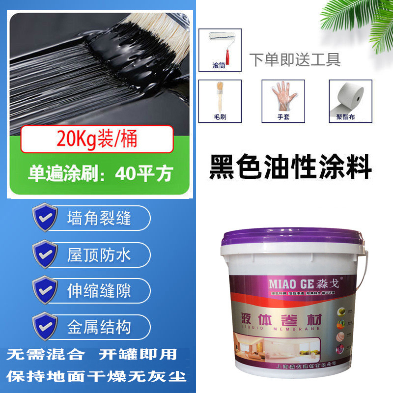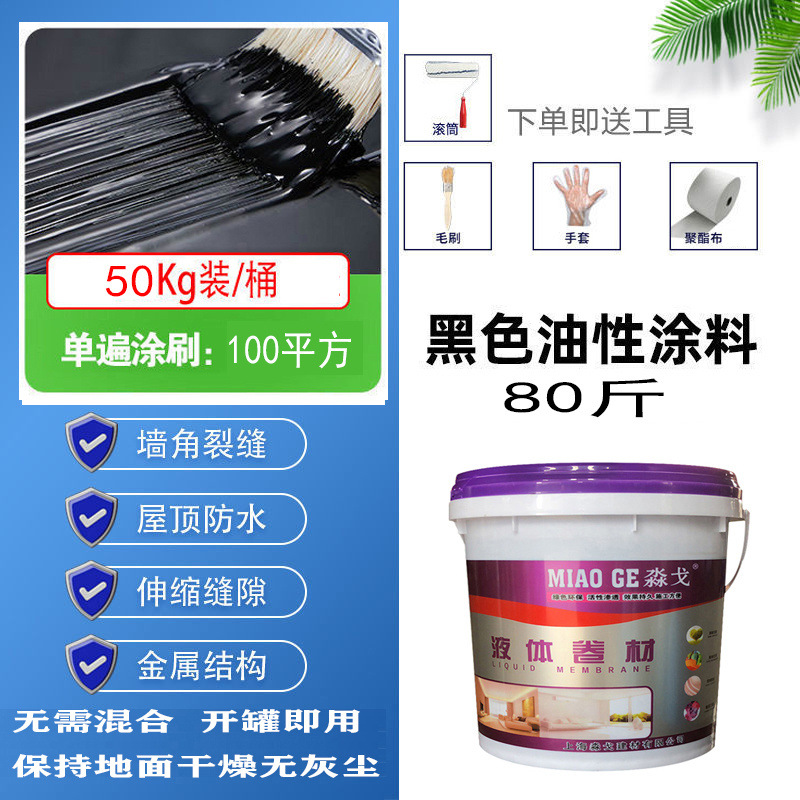 • 블랙 오일리 [고탄성, 방수 및 균열 방지] - 50kg [한 번의 브러시로 약 100 평방 미터] 무료 도구
