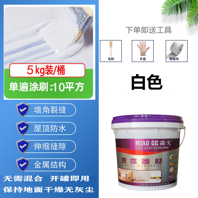 • 흰색 [고탄성 방수, 균열 방지 및 단열] - 5kg [한 번의 브러시로 약 10 평방 미터] 무료 도구