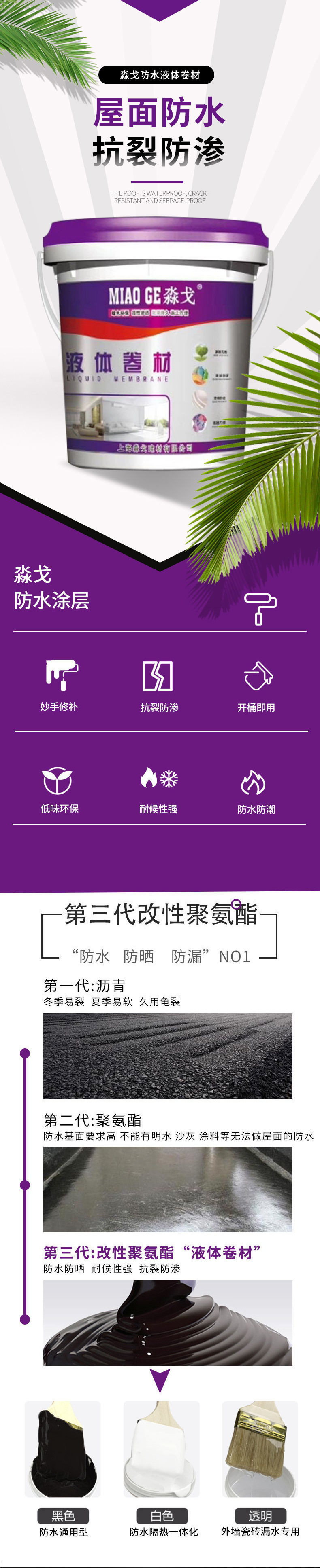 방수 코팅 폴리우레탄 액체 롤러 지붕 지붕 수영장 외벽 균열 및 틈새 방지 및 방열재