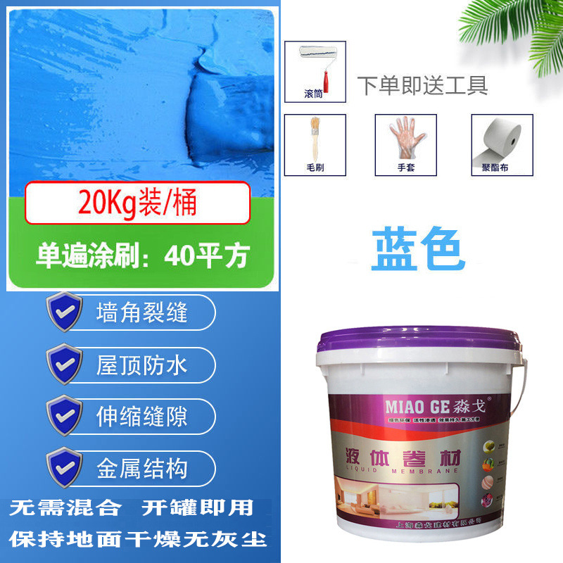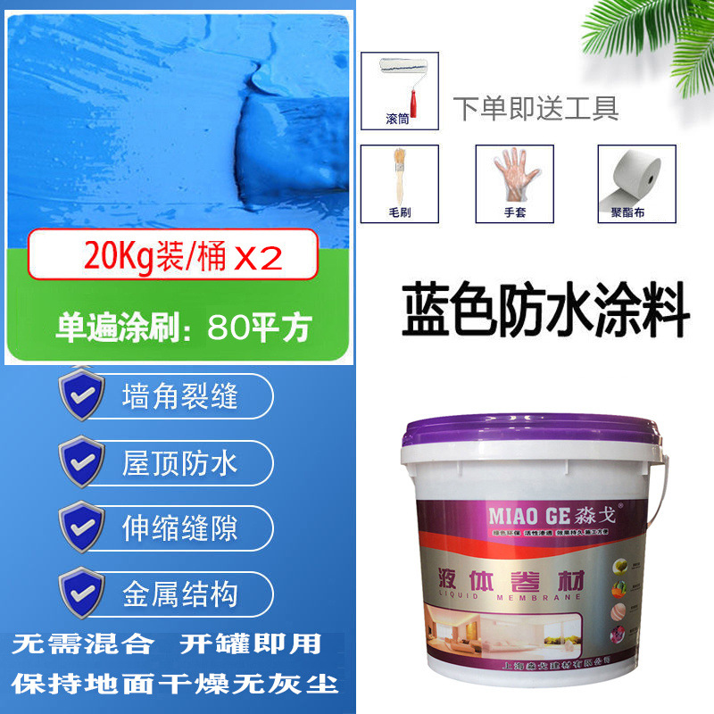 • 파란색 [고탄성 방수 및 균열 방지] - 40kg [한 번의 브러시 스트로크는 약 80 평방 미터] 무료 도구
