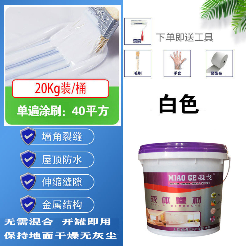 • 흰색 [고탄성 방수, 균열 방지 및 단열] - 20kg [한 번의 브러시로 약 40 평방 미터] 무료 도구