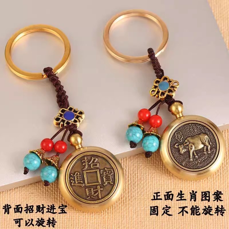 황동 열쇠 고리 펜던트 순수 구리 도매 별자리 복고풍 핸들 부품 자동차 특별 제공 돈을 얻기 위해 돈을 돌려주세요