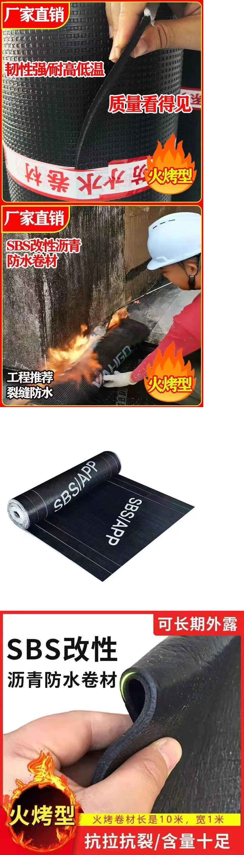 불로 구운 SBS 두꺼운 변성 아스팔트 방수 시트 캐빈 지붕 핫멜트 방수 시트 오일 펠트스토어 가기