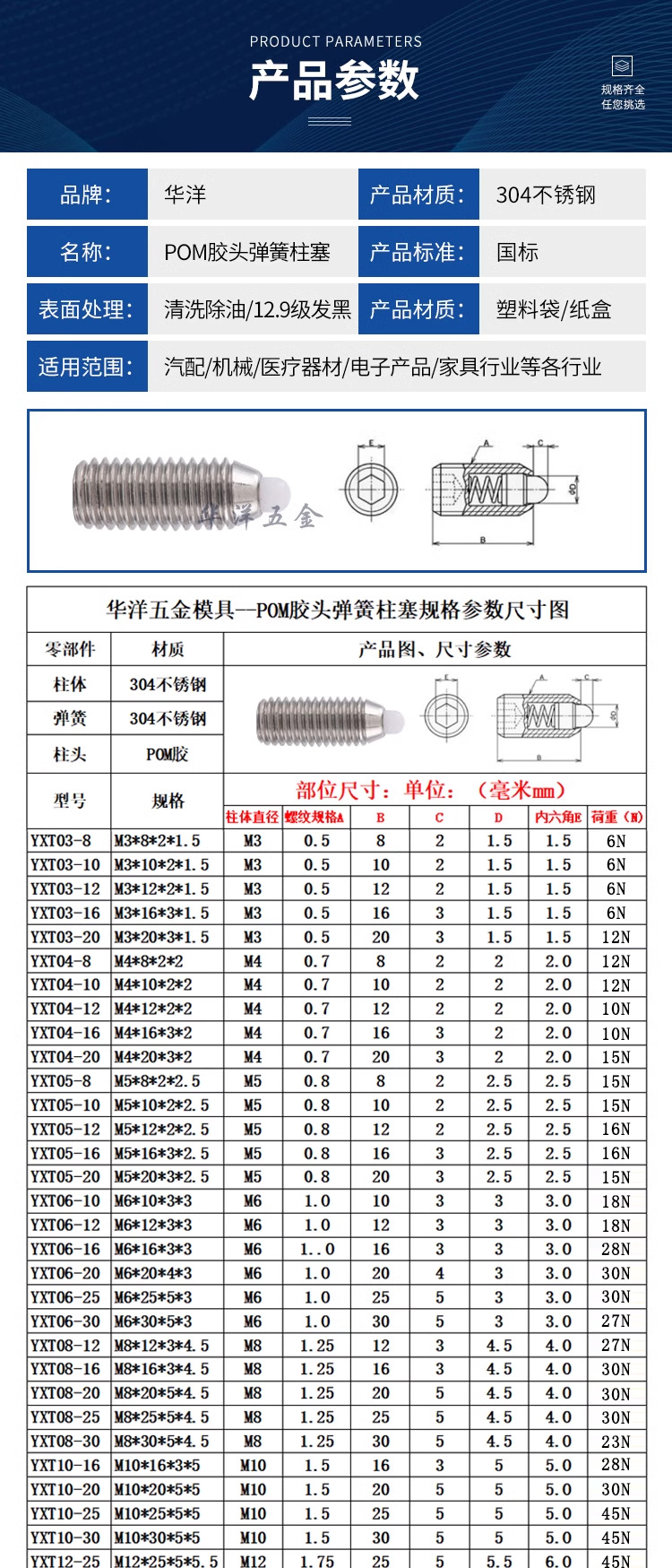 POM 고무 헤드 스프링 플런저 나일론 헤드 볼 헤드 포지셔닝 볼 탄성 탑 와이어 텔레스코픽 핀 웨이브 비드 나사