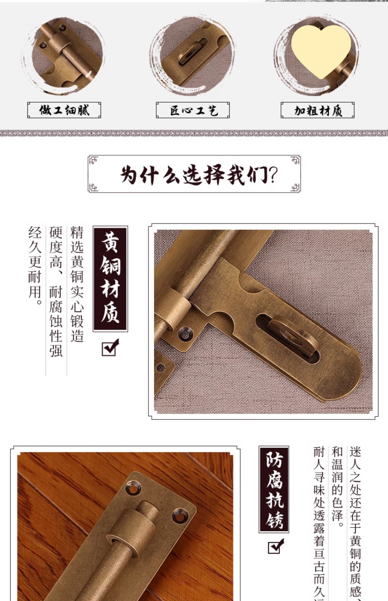 구식 안뜰 야외 나무 문 잠금 장치, 고대 건물 빌라 문 볼트 잠금 장치, 중국식 순수 구리 문 래치, 구리 문 래치스토어 가기