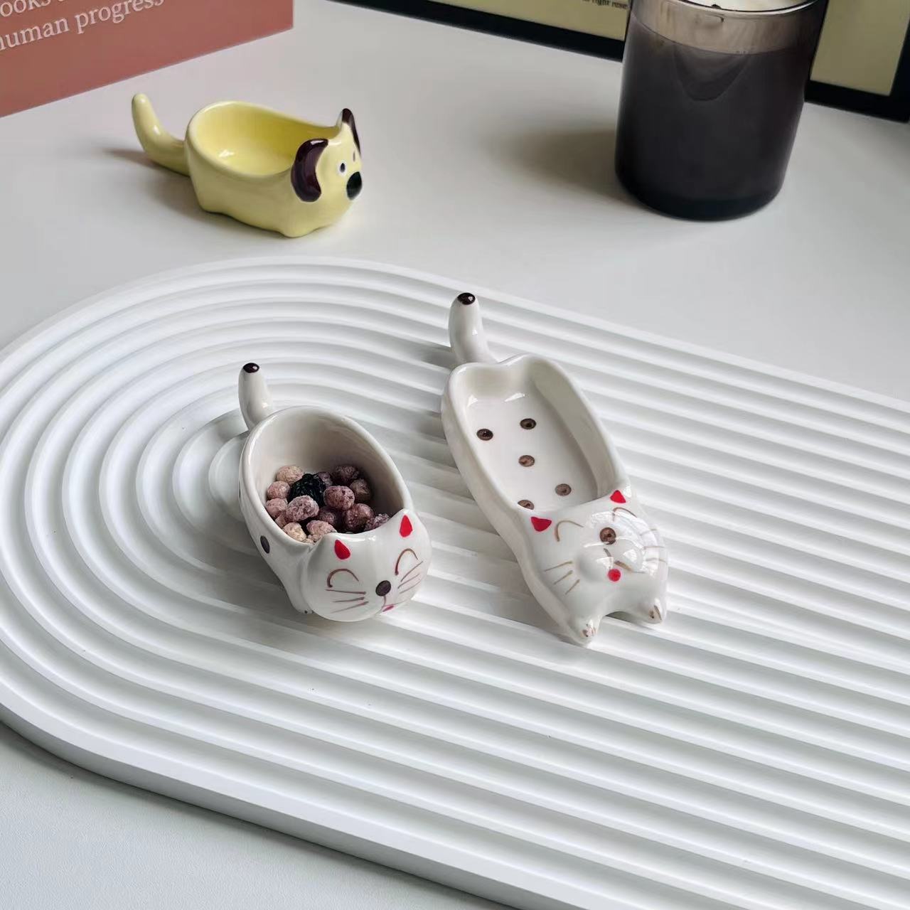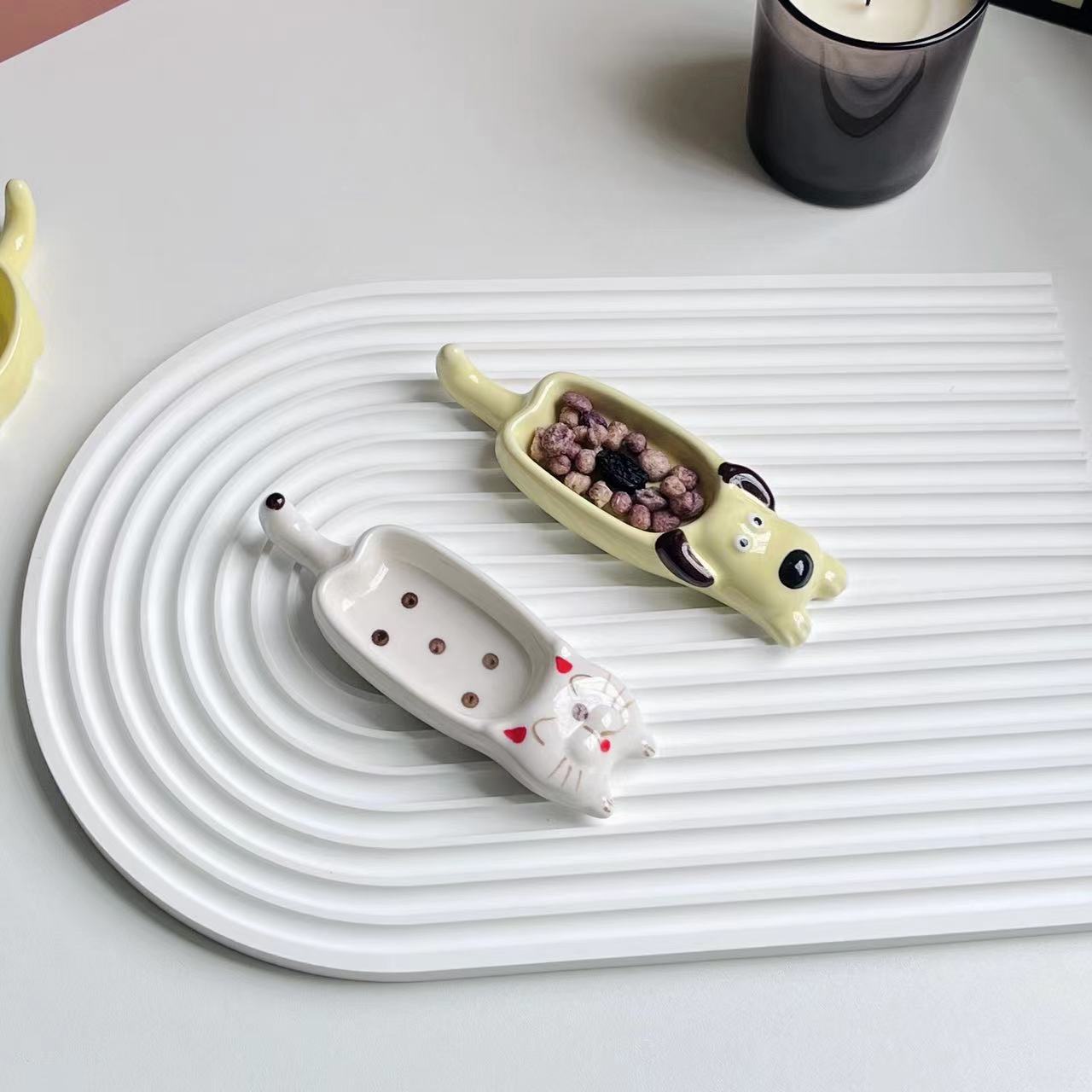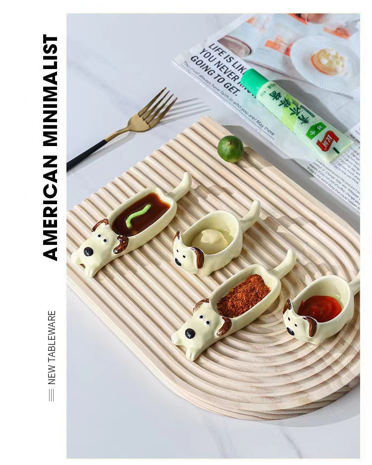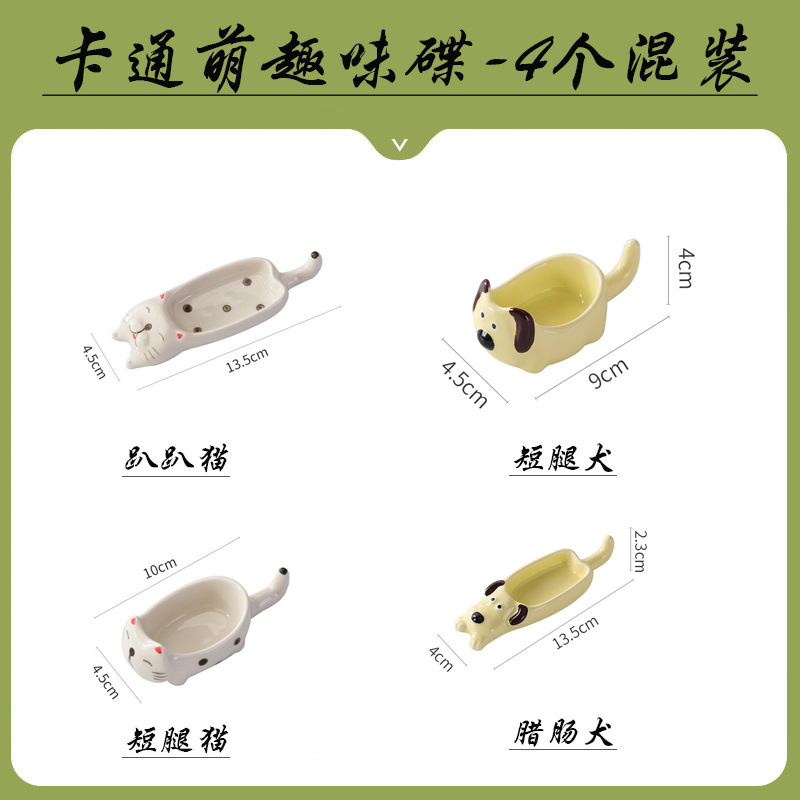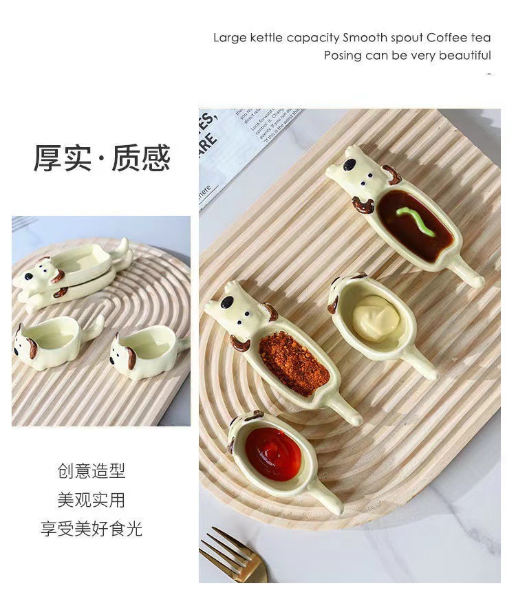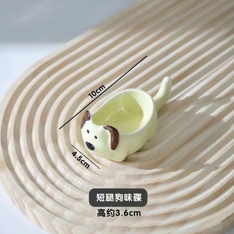 귀여운 만화 세라믹 디핑 접시, 창의적인 고양이와 개 모양의 냄비, 손으로 짜낸 단일 손잡이 맛 접시, 가정용 조미료 접시