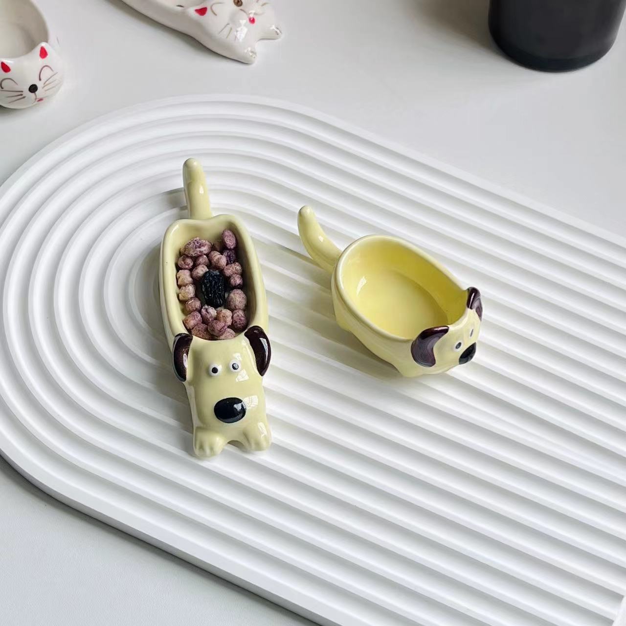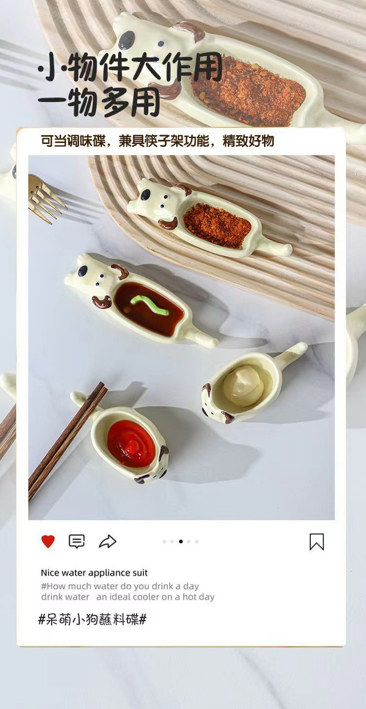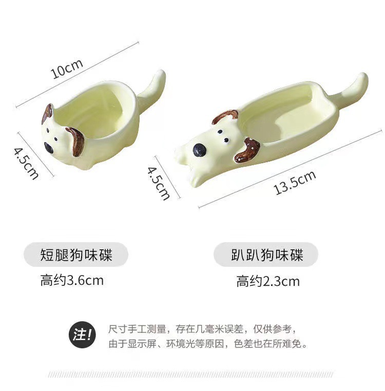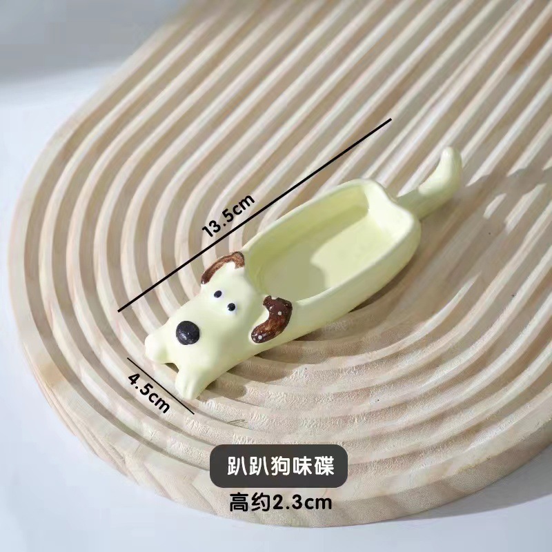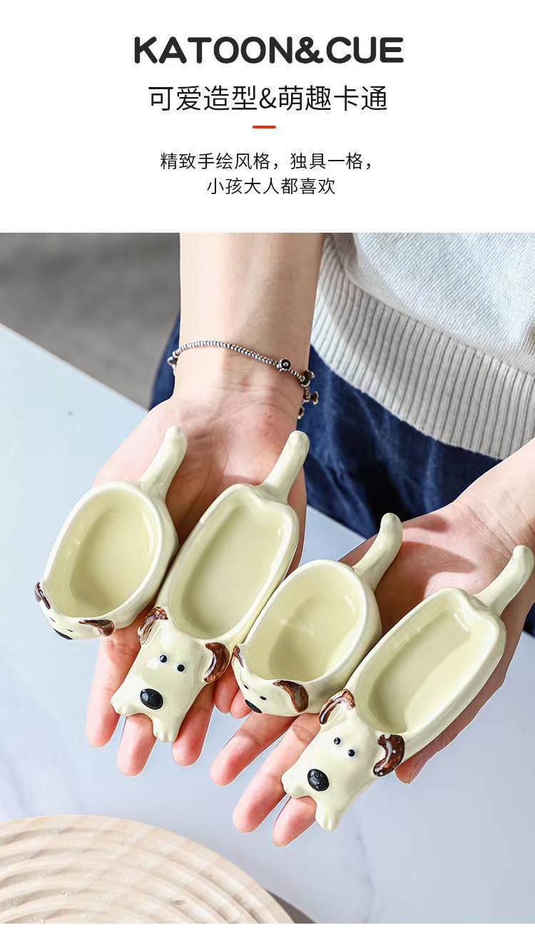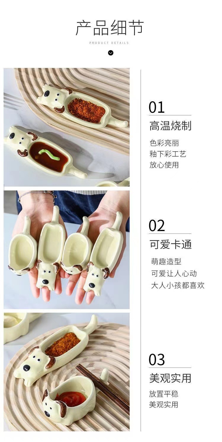 귀여운 만화 세라믹 디핑 접시, 창의적인 고양이와 개 모양의 냄비, 손으로 짜낸 단일 손잡이 맛 접시, 가정용 조미료 접시스토어 가기