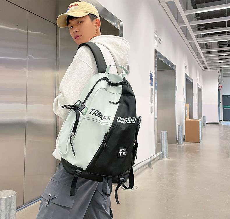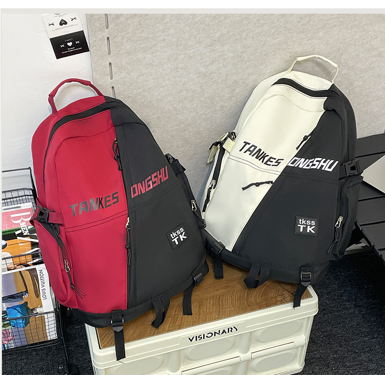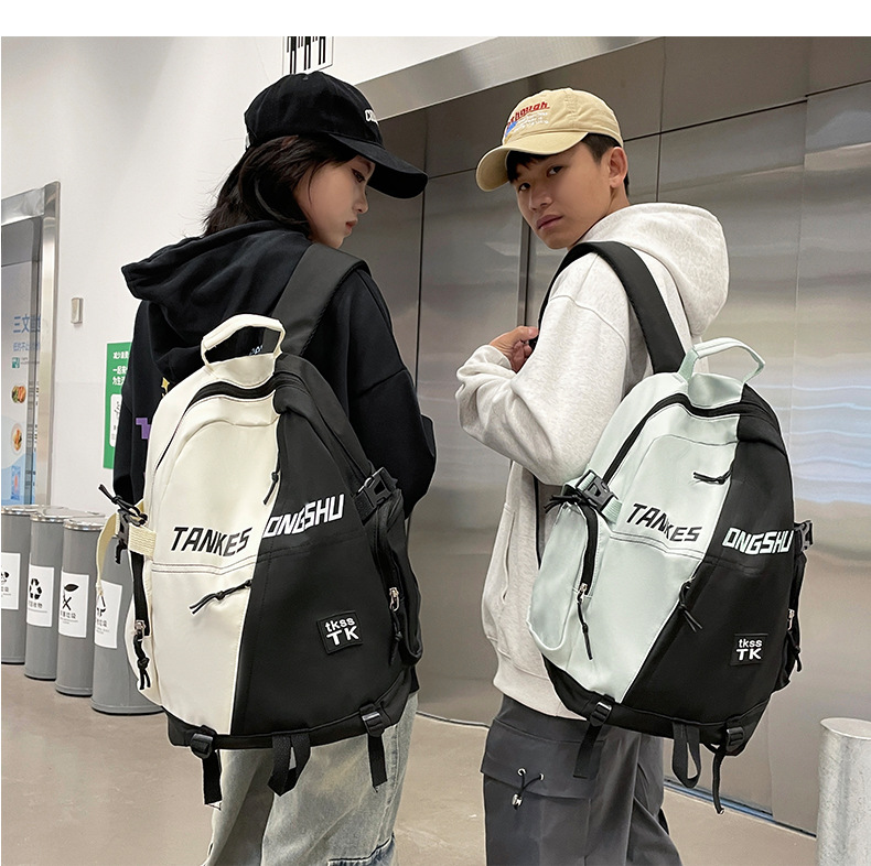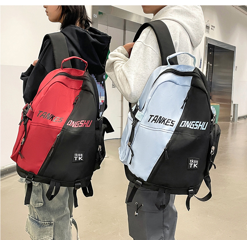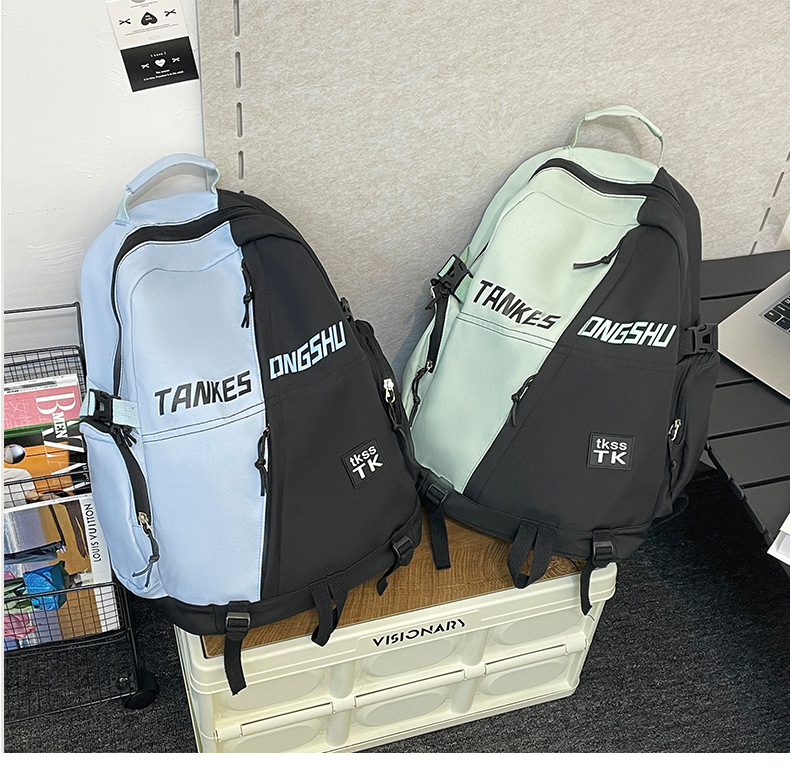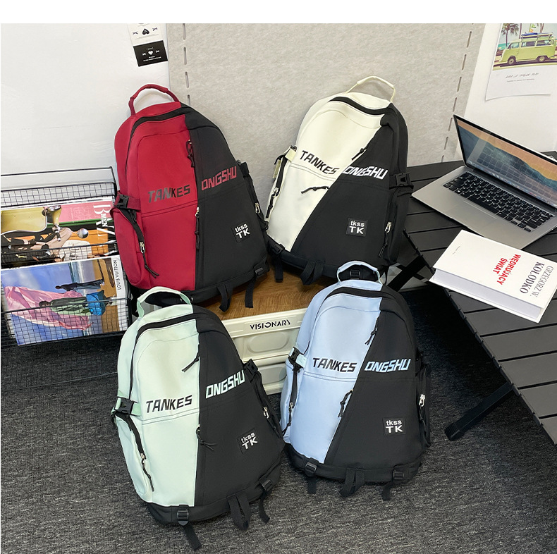 대용량 컬러 블록 배낭 한국 스타일 캐주얼 패션 여행 스포츠 배낭 고등학교 대학생 학교 가방스토어 가기