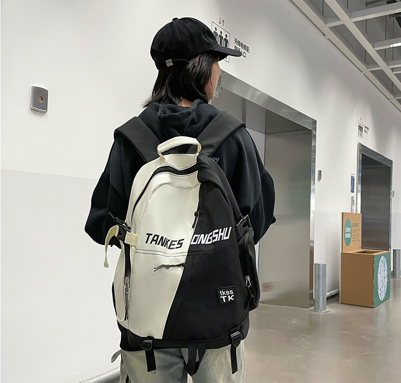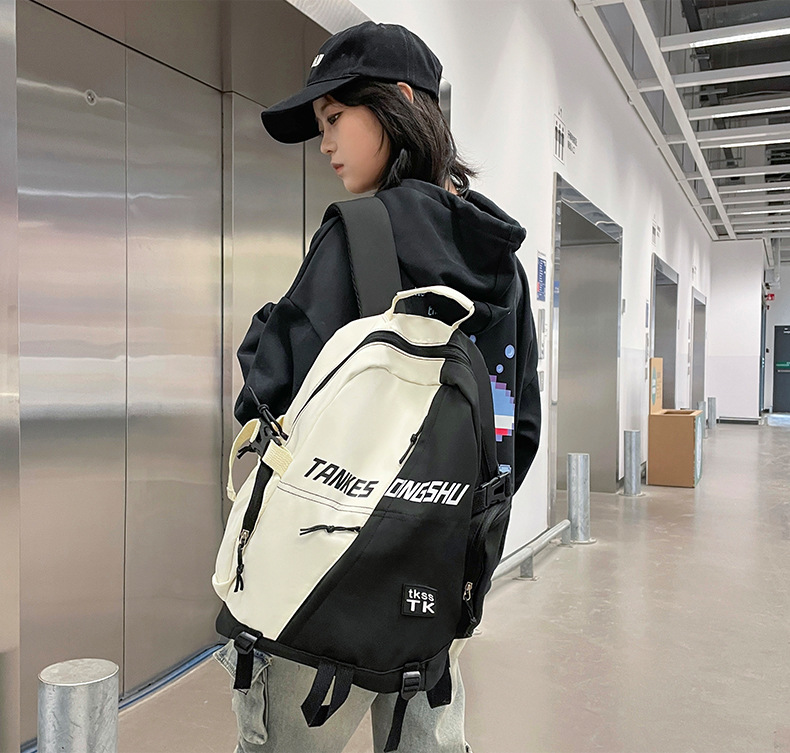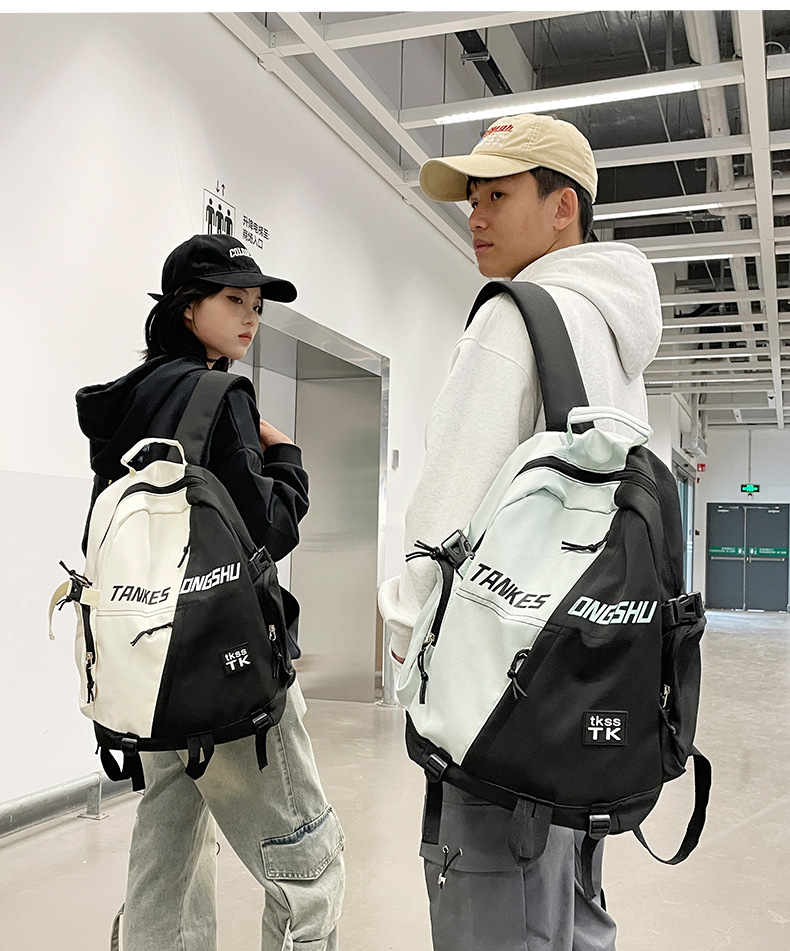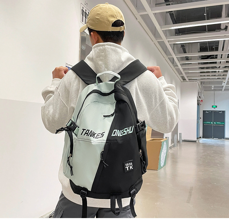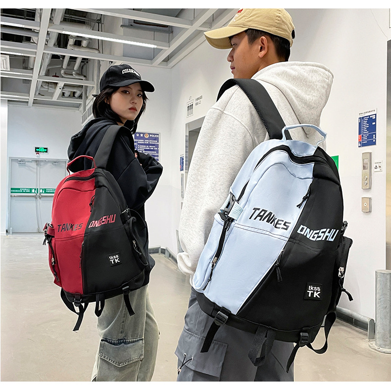 대용량 컬러 블록 배낭 한국 스타일 캐주얼 패션 여행 스포츠 배낭 고등학교 대학생 학교 가방스토어 가기