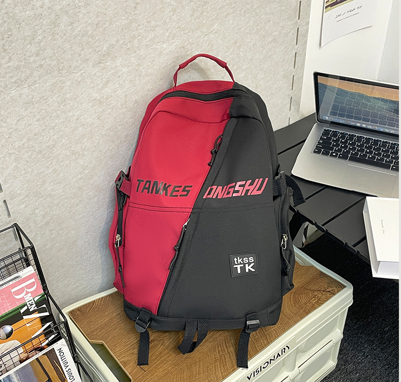 대용량 컬러 블록 배낭 한국 스타일 캐주얼 패션 여행 스포츠 배낭 고등학교 대학생 학교 가방