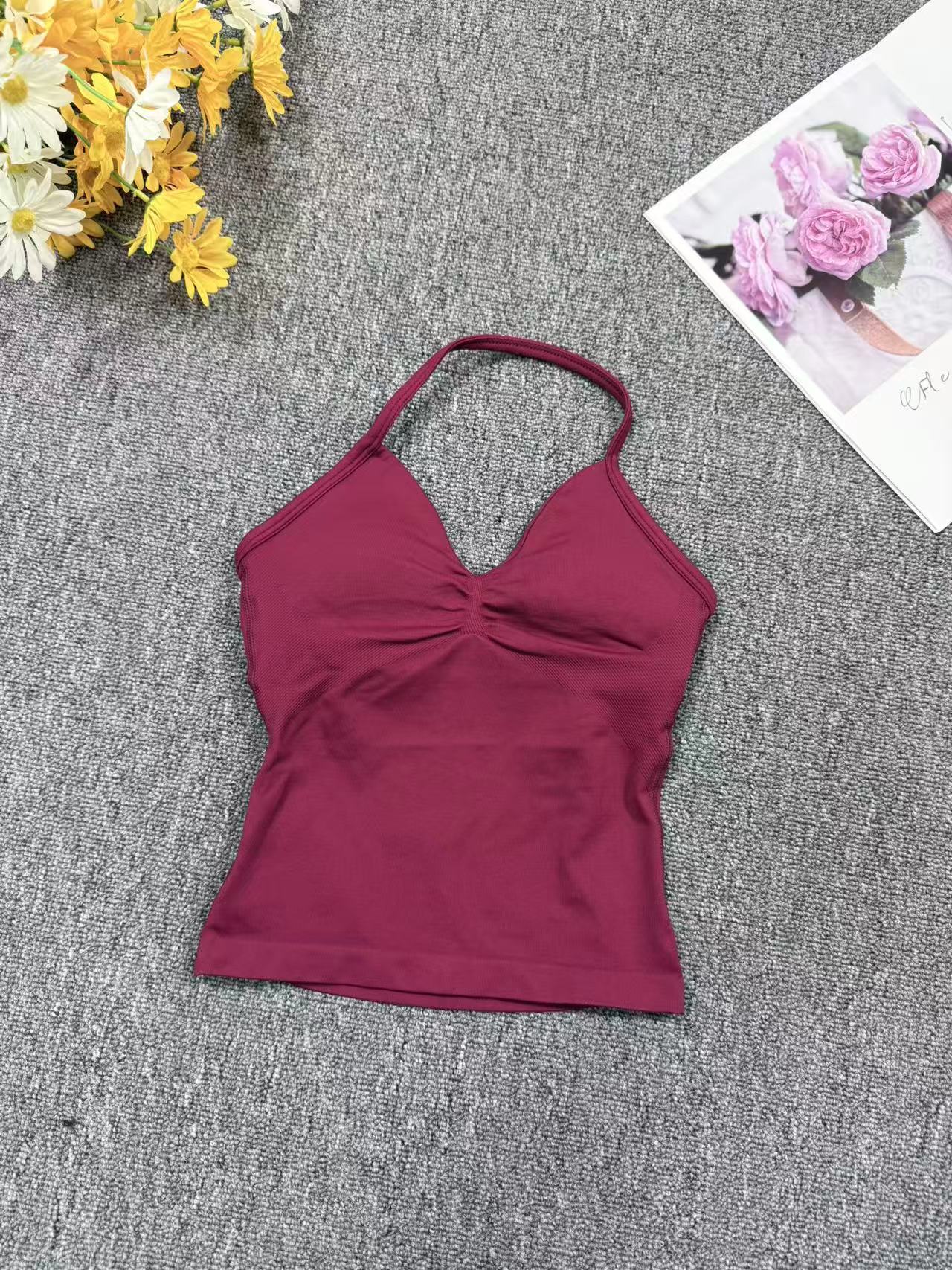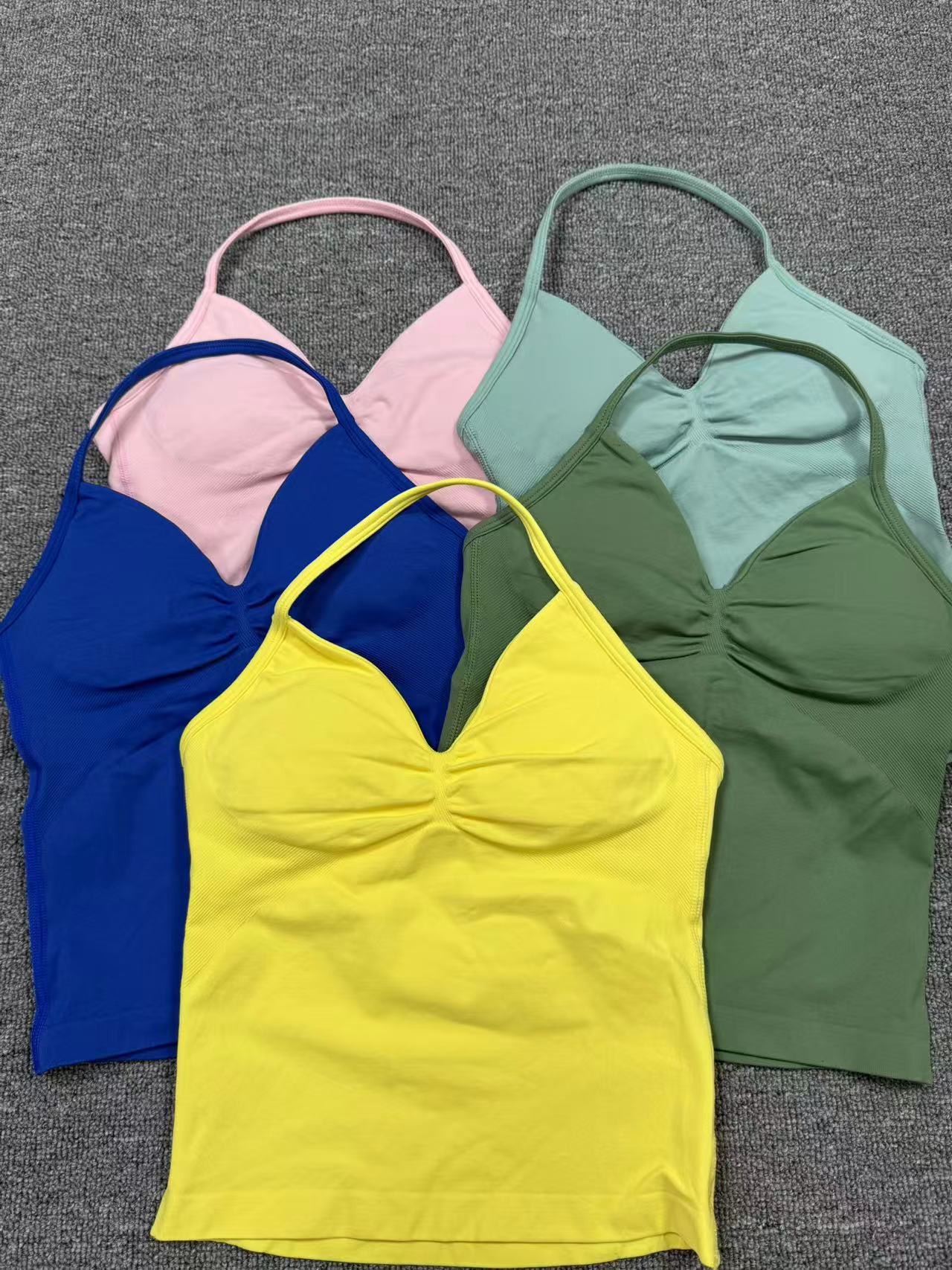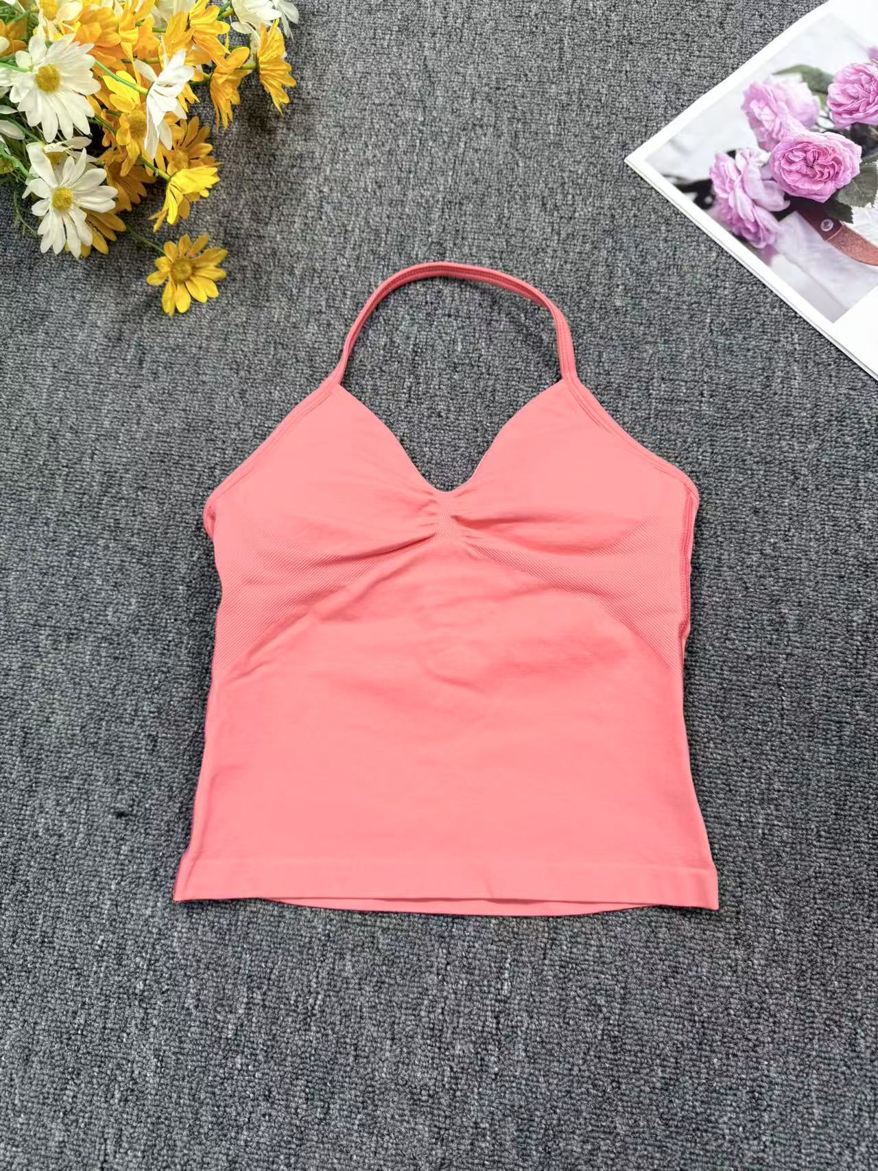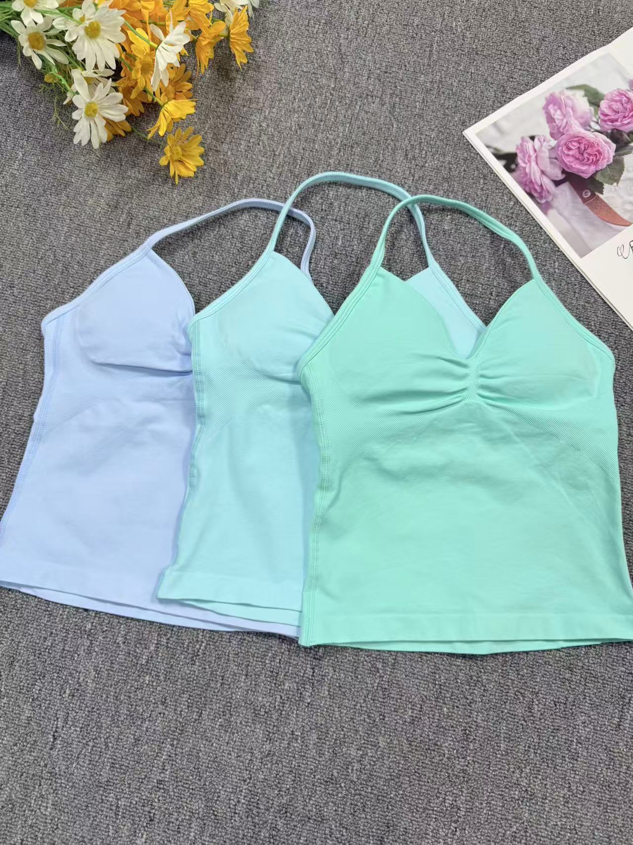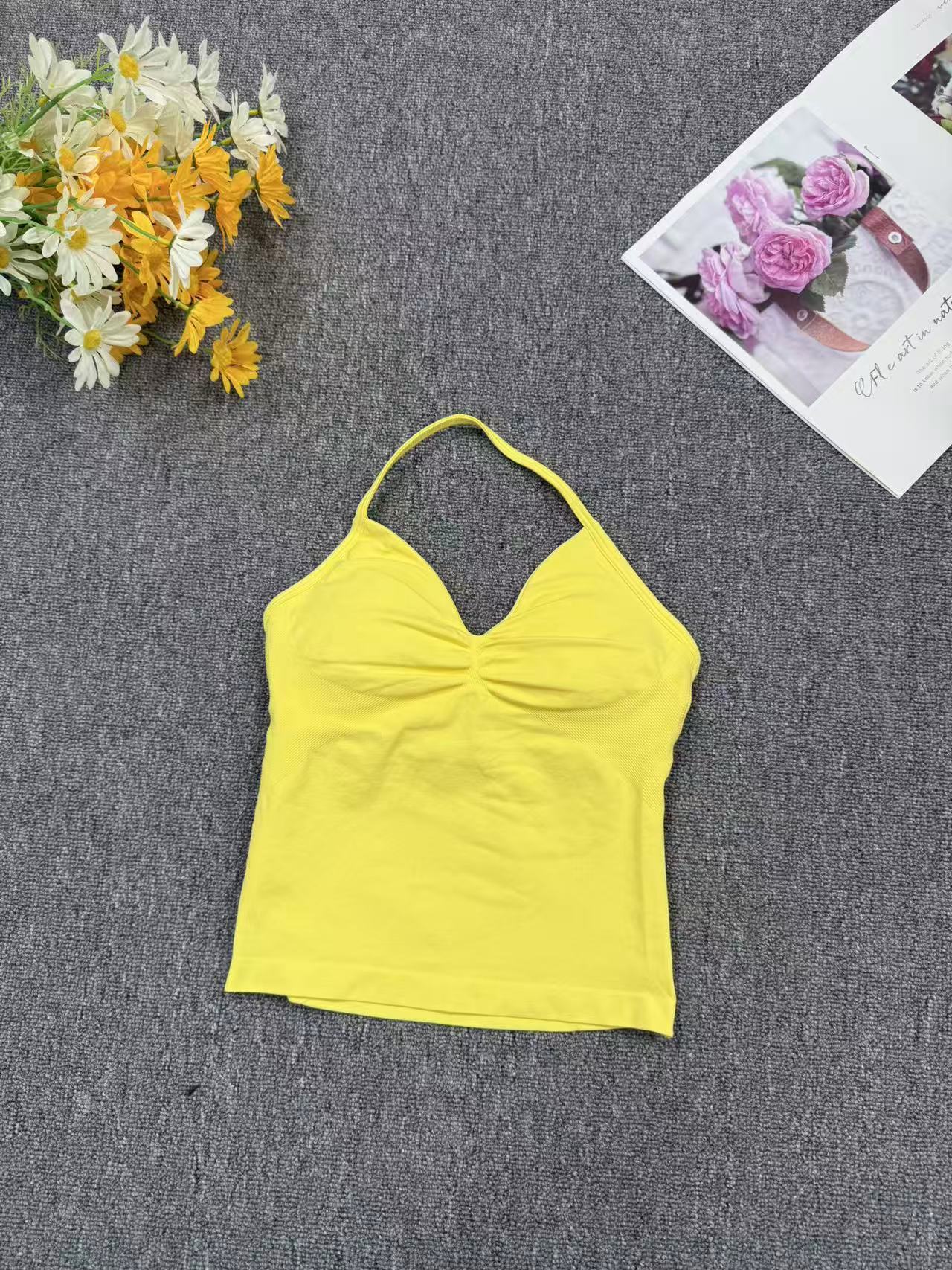 새로운 솔리드 컬러 스포츠 요가 조끼 여름 슬림 피트 속건성 요가 탑 허리 피트니스 탑 여성 도매스토어 가기