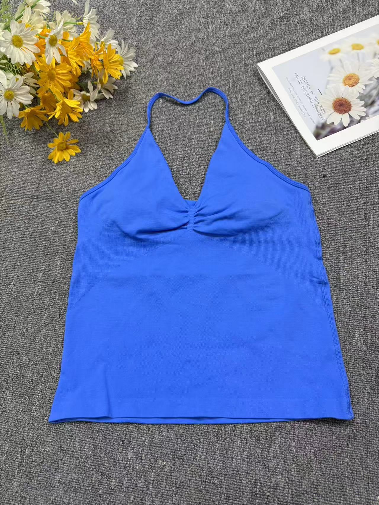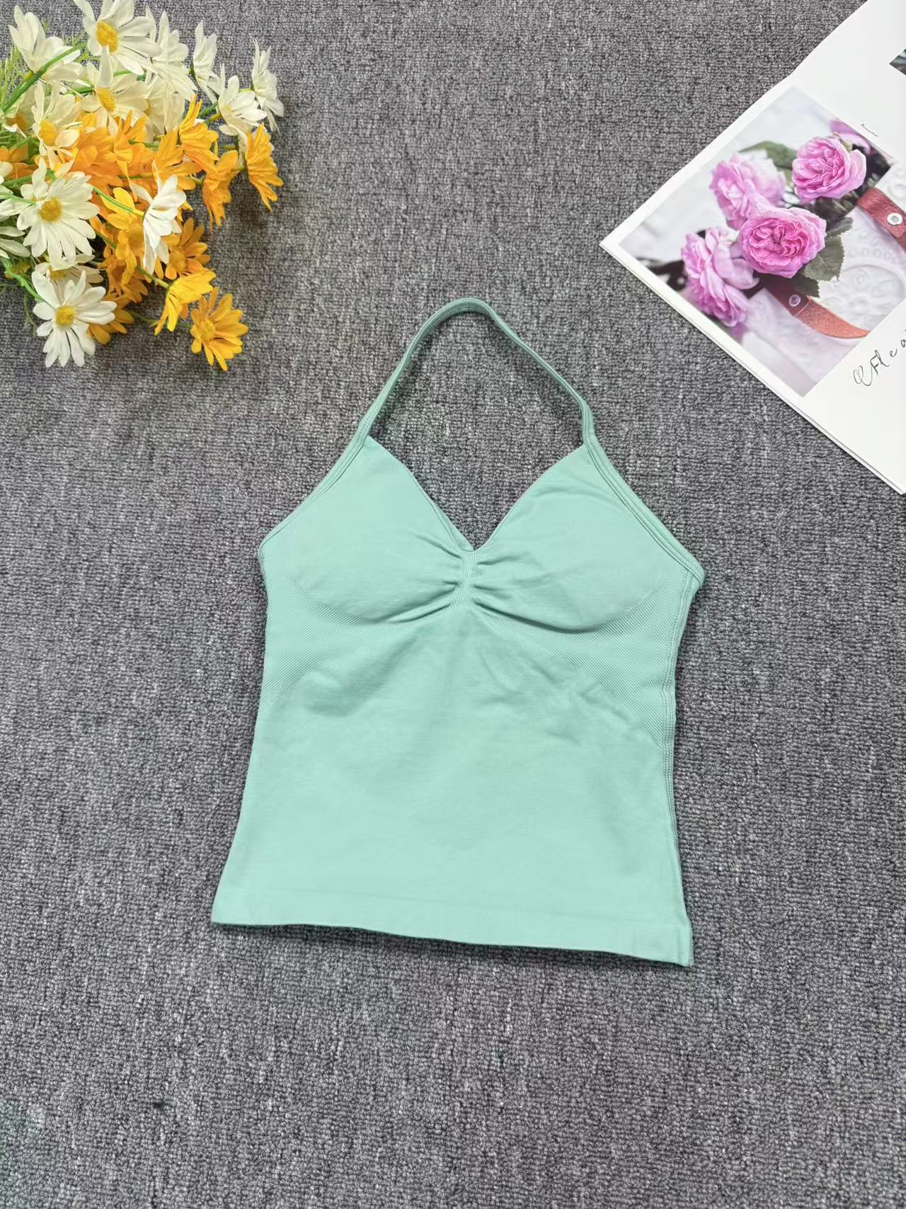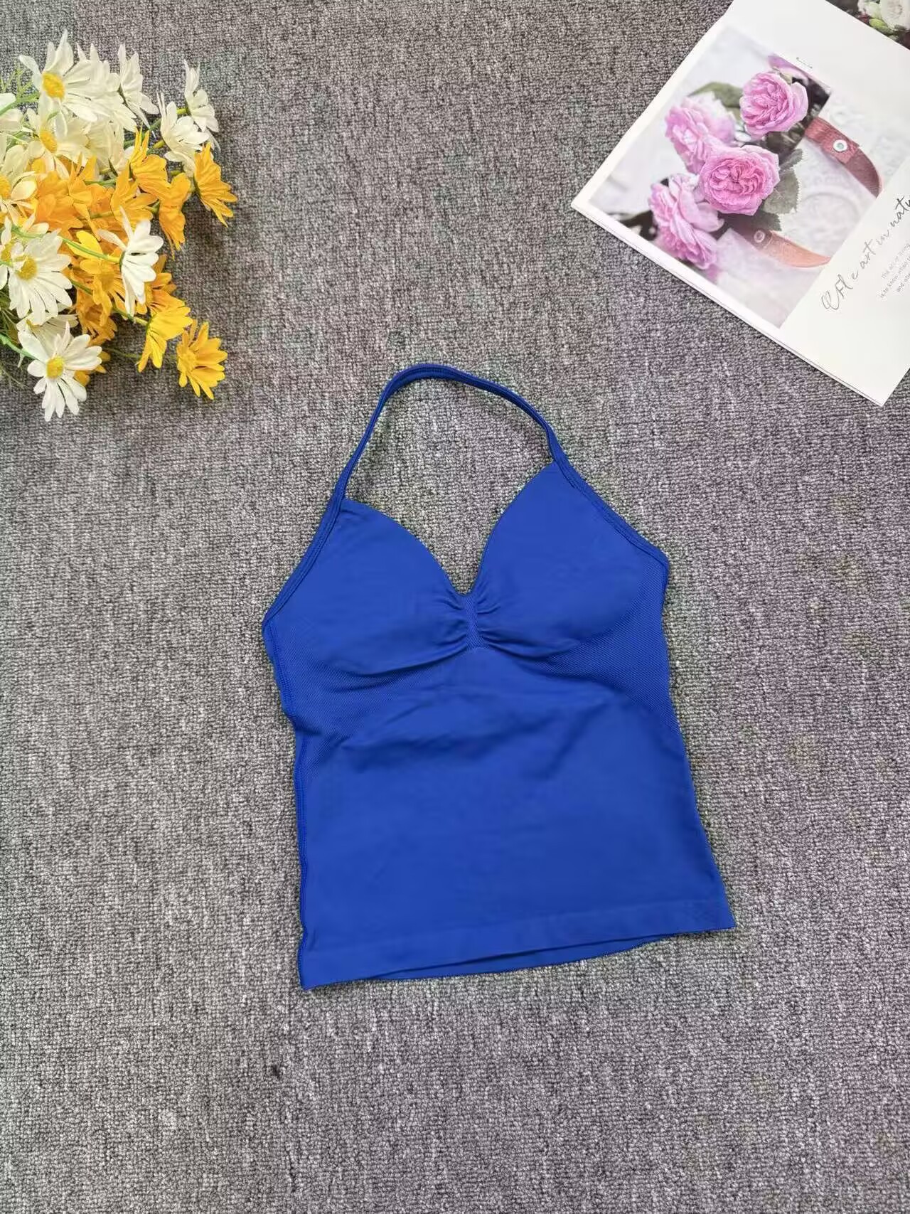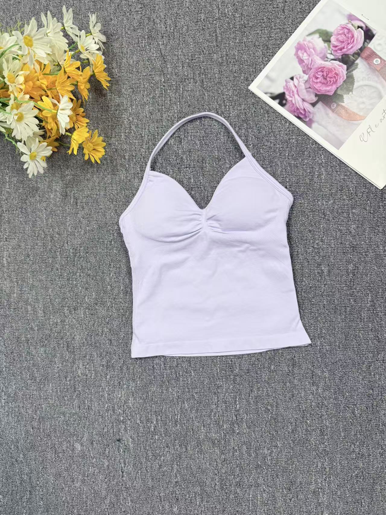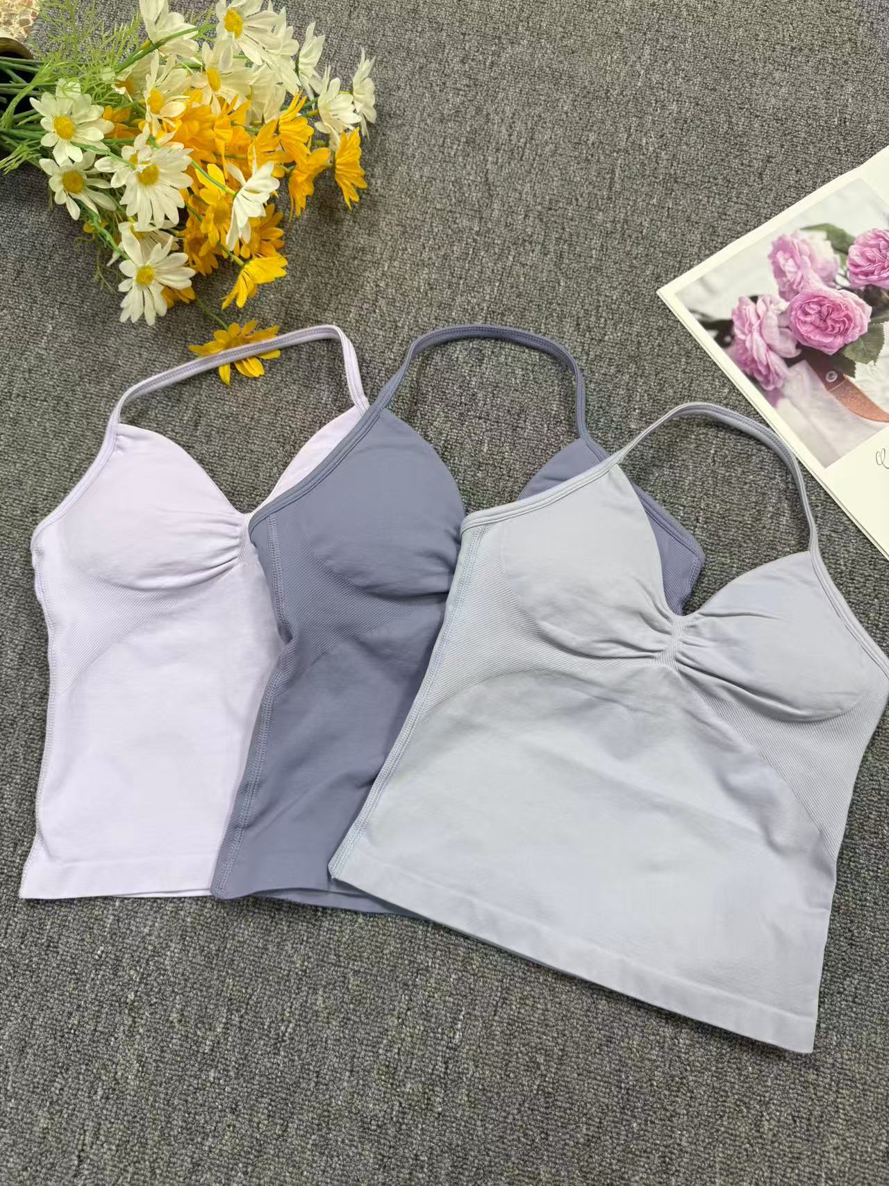 새로운 솔리드 컬러 스포츠 요가 조끼 여름 슬림 피트 속건성 요가 탑 허리 피트니스 탑 여성 도매스토어 가기